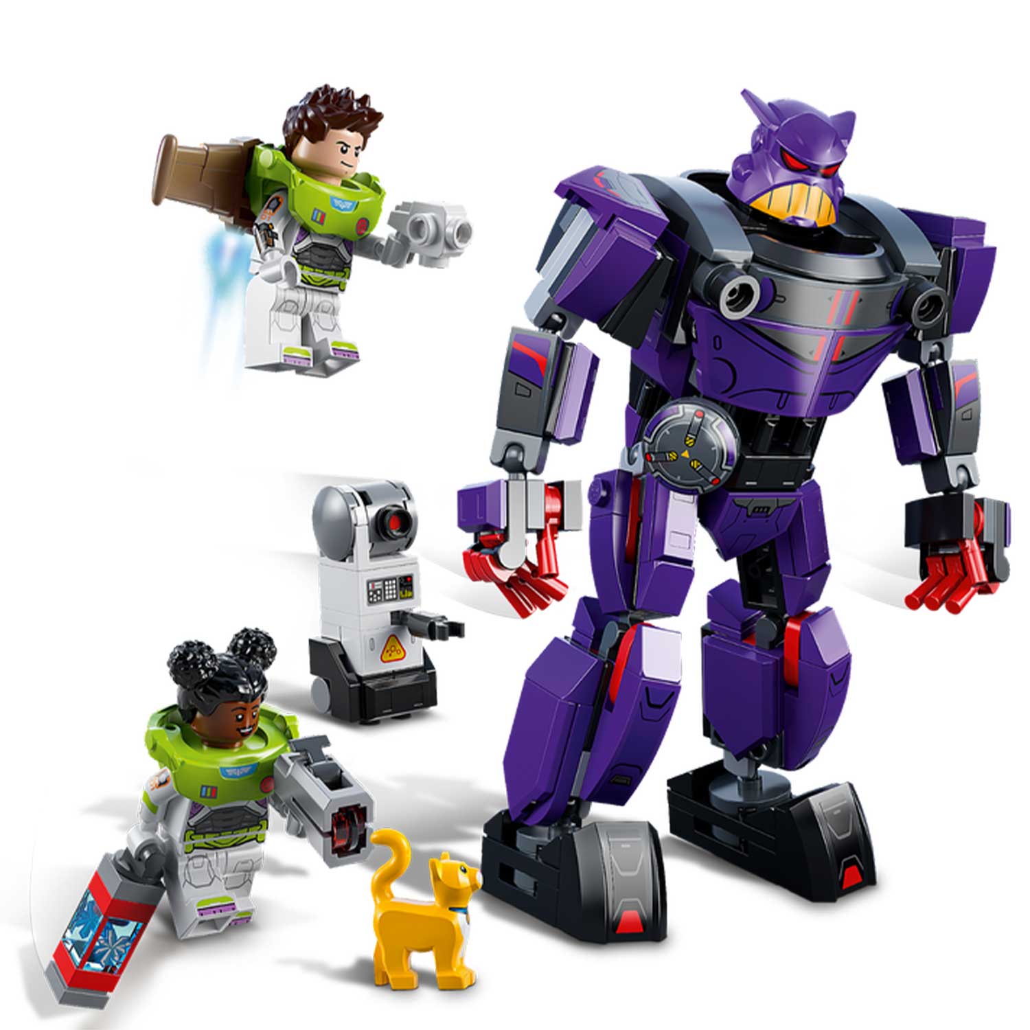 - в комплекте персонажи из фильма: две мини-фигурки, в том числе фигурка Базза Лайтера, фигурка робота-кота , злодея Зурга и подвижного робота