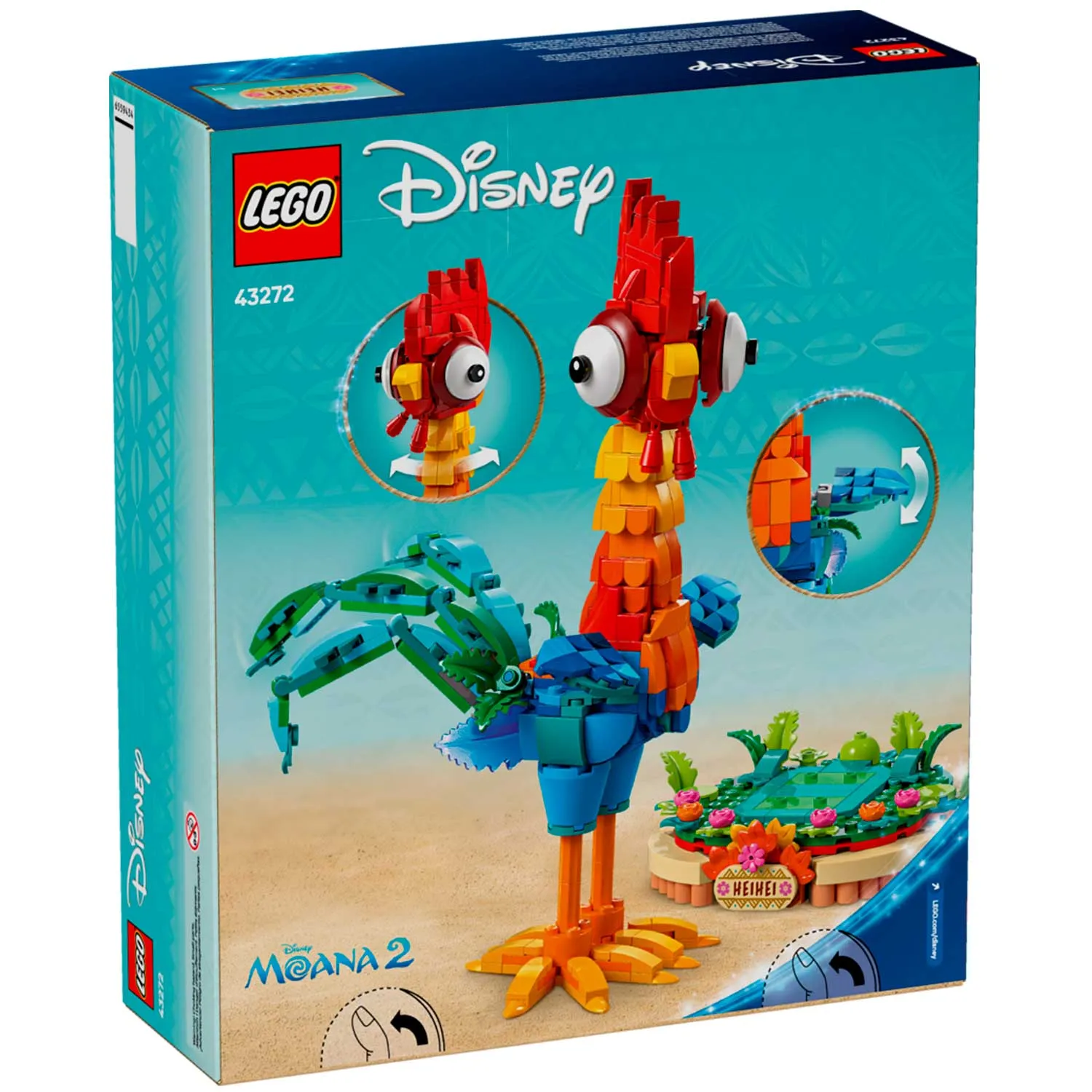 Конструктор LEGO Disney 43272 «Хэйхэй» — это очаровательный набор, посвящённый любимому персонажу из мультфильма Moana и его продолжения Moana 2. С этим набором дети и взрослые смогут собрать забавного петуха Хэйхэя, известного своим комичным характером. Модель выполнена в ярких цветах и имеет подвижные элементы, что делает её не только игрушкой, но и стильным украшением коллекции LEGO Disney.
