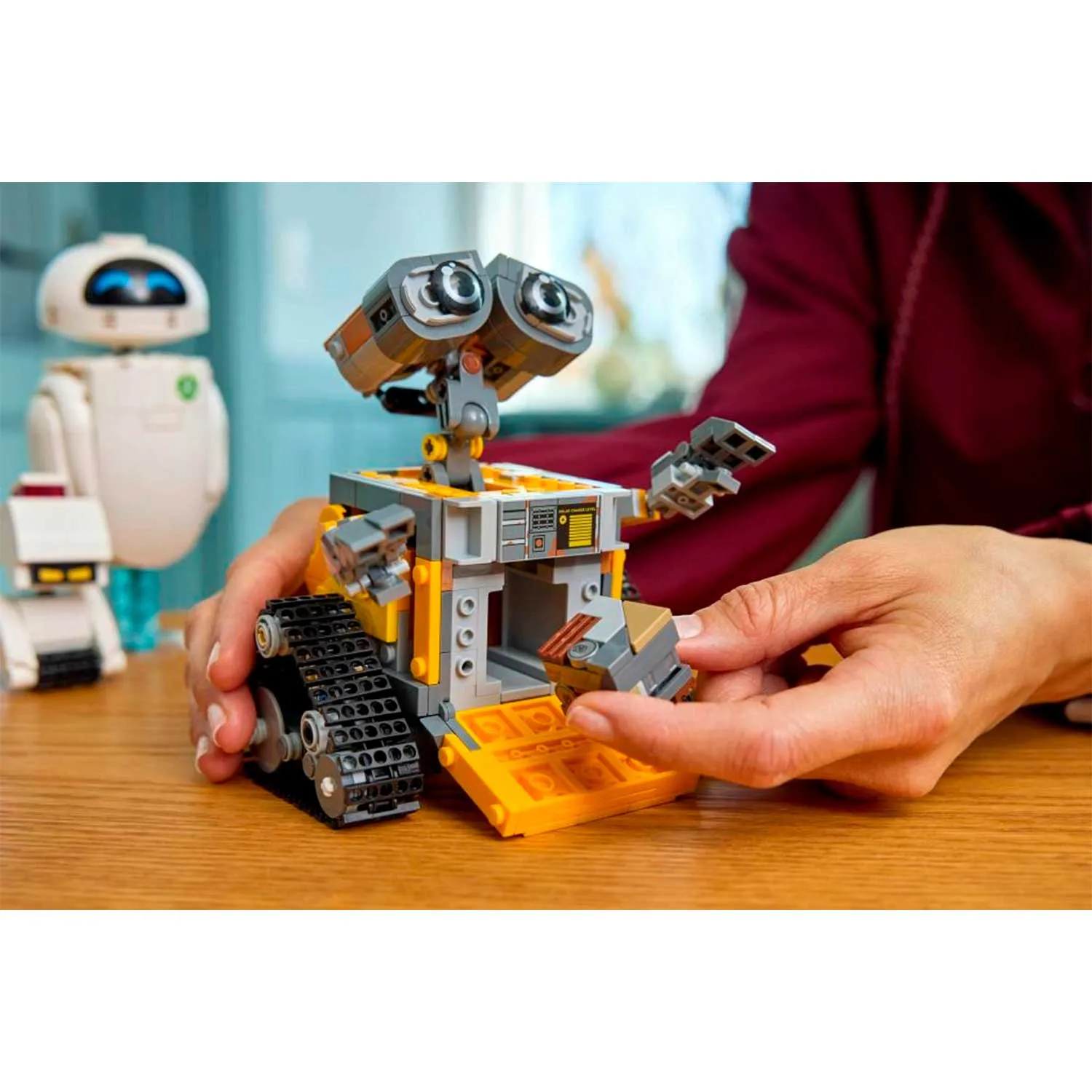 - в набор входят 4 персонажа LEGO Disney: ВАЛЛ-И, ЕВА, МО и Хэл, а также тщательно подобранные детали, включая растение в ботинке из мультфильма