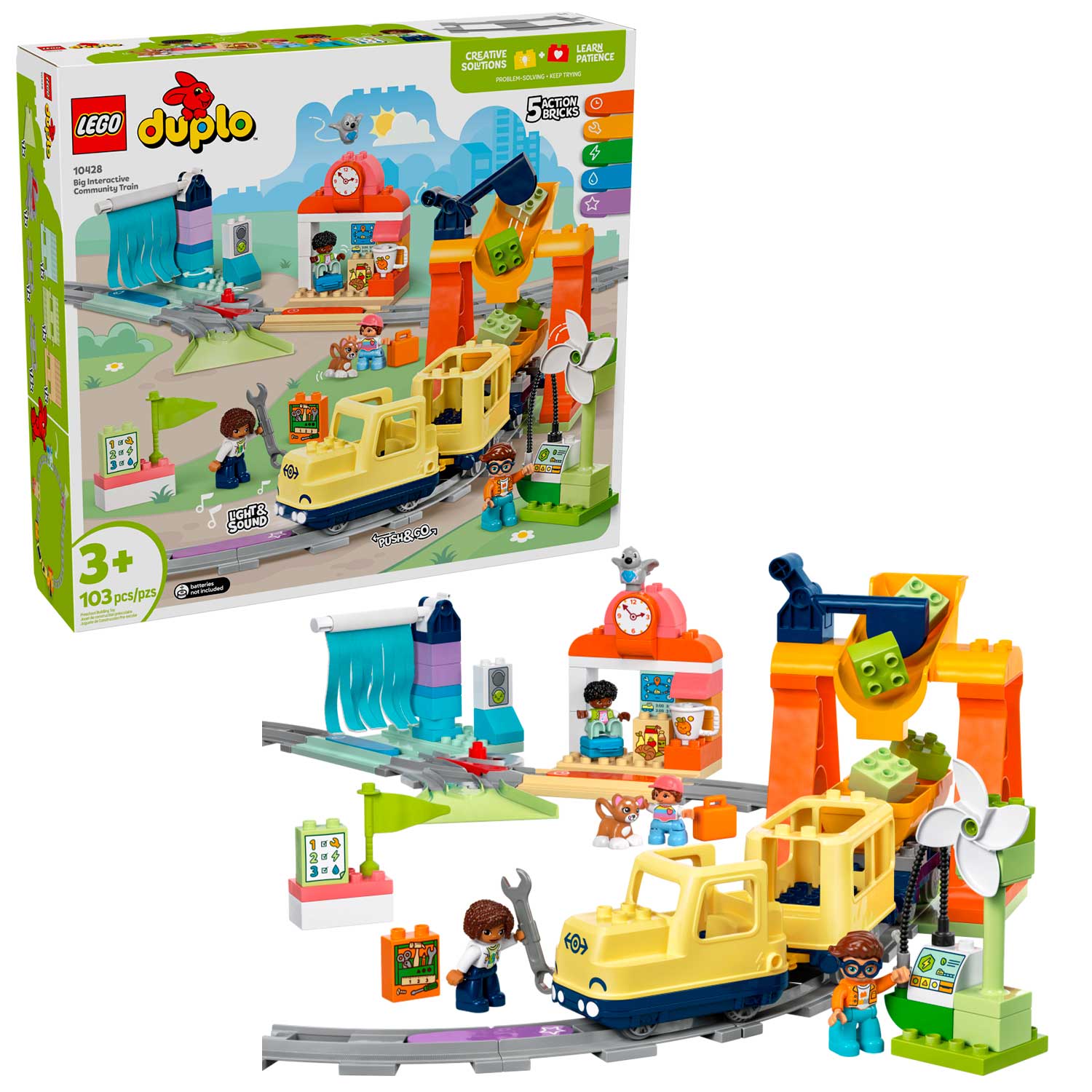 - интерактивное приложение: бесплатное приложение LEGO DUPLO Interactive Trains вдохновляет малышей и позволяет им записывать собственные звуки и управлять поездом с помощью мобильного устройства