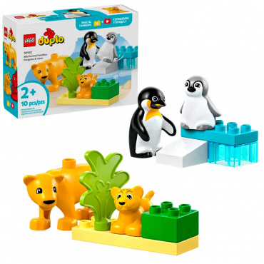 - в набор входят пингвин и его птенец, а также лев и его детеныш