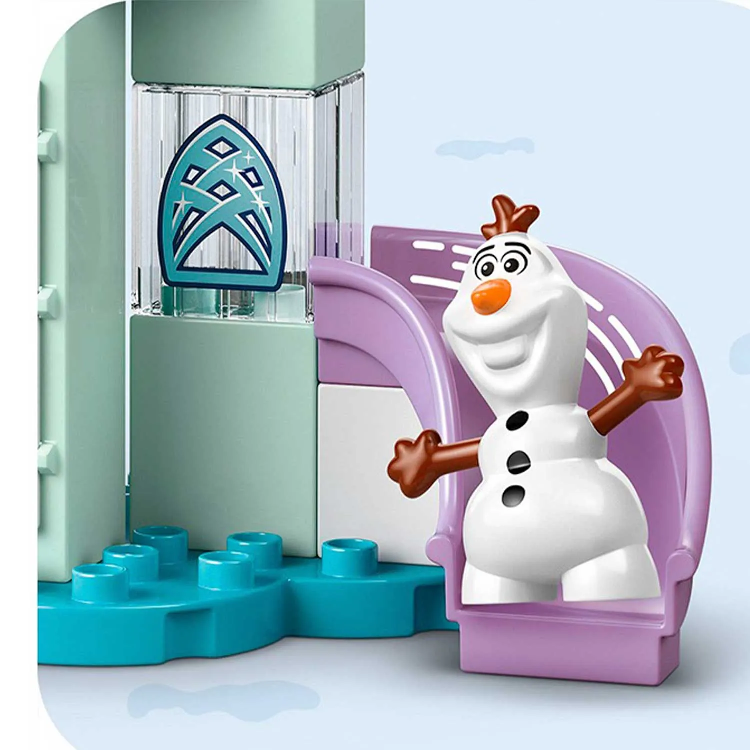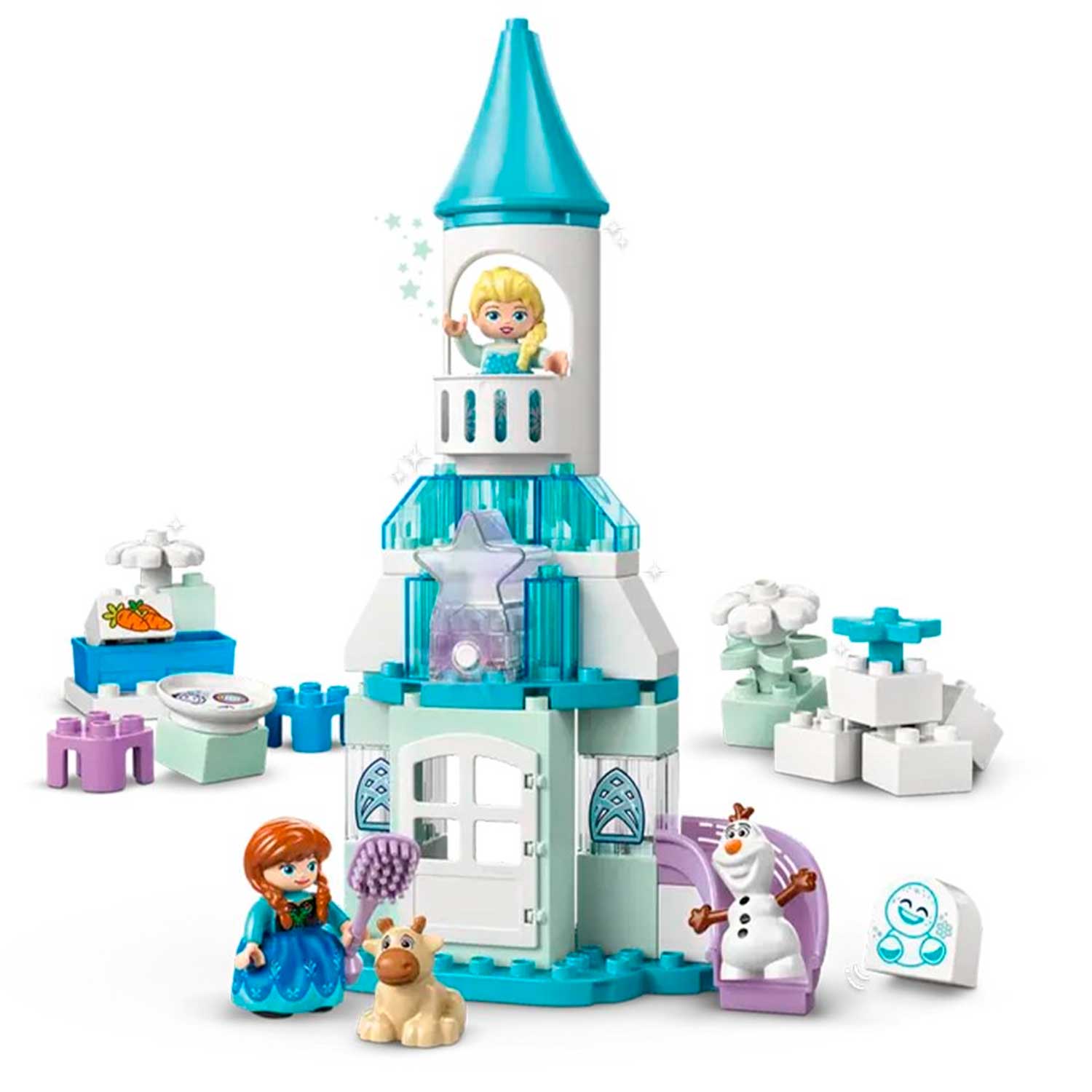- с этим конструктором ребёнок сможет построить ледяной дворец с открывающейся дверью и горкой, устроить вечеринку с Эльзой и Анной, позаботиться о маленьком оленёнке Свене и поиграть с Олафом