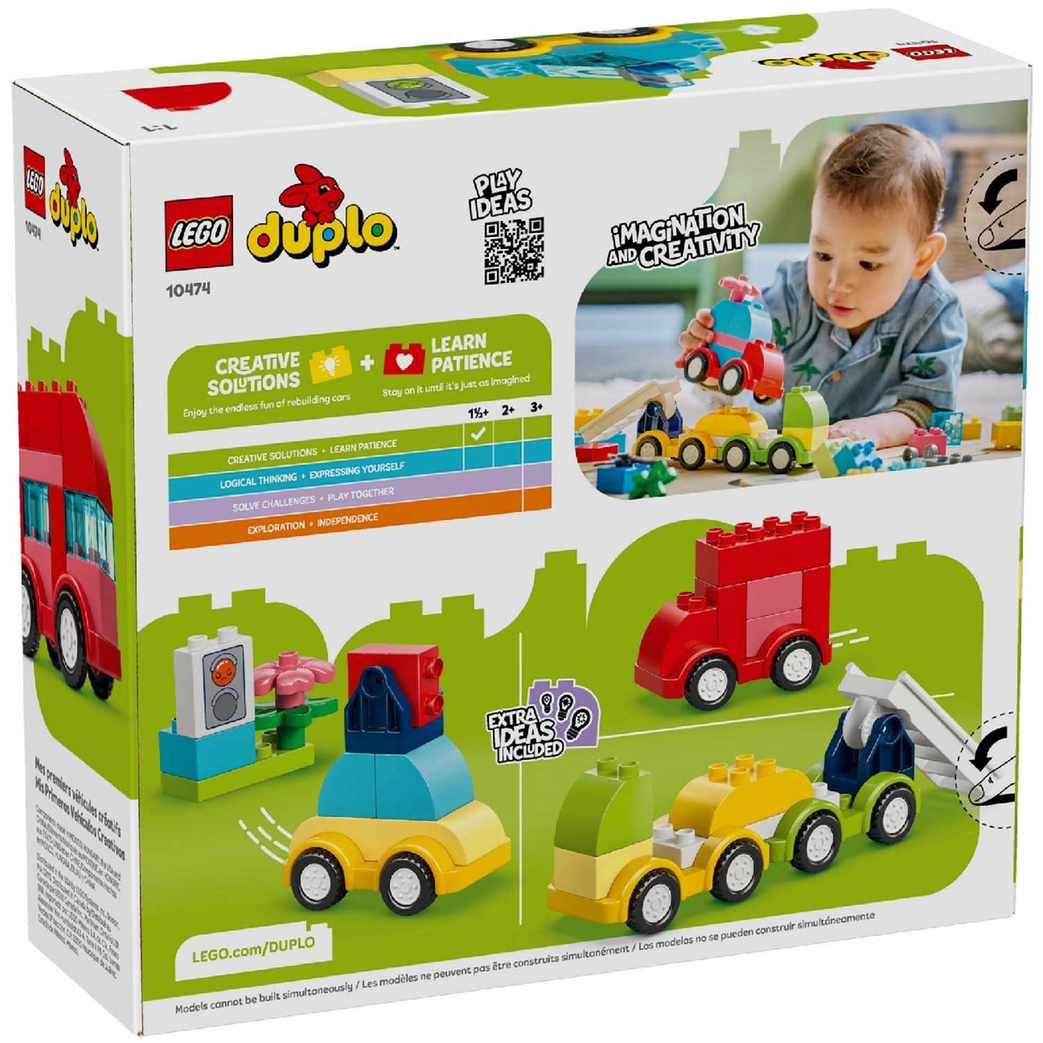 LEGO DUPLO 10474 «Креативные транспортные средства» — идеальный набор для развития воображения и мелкой моторики у малышей. С помощью 42 ярких и безопасных деталей ребёнок сможет собрать базовые модели транспортных средств. Этот набор отлично подходит для первых шагов в мире LEGO и станет увлекательным подарком для малышей.