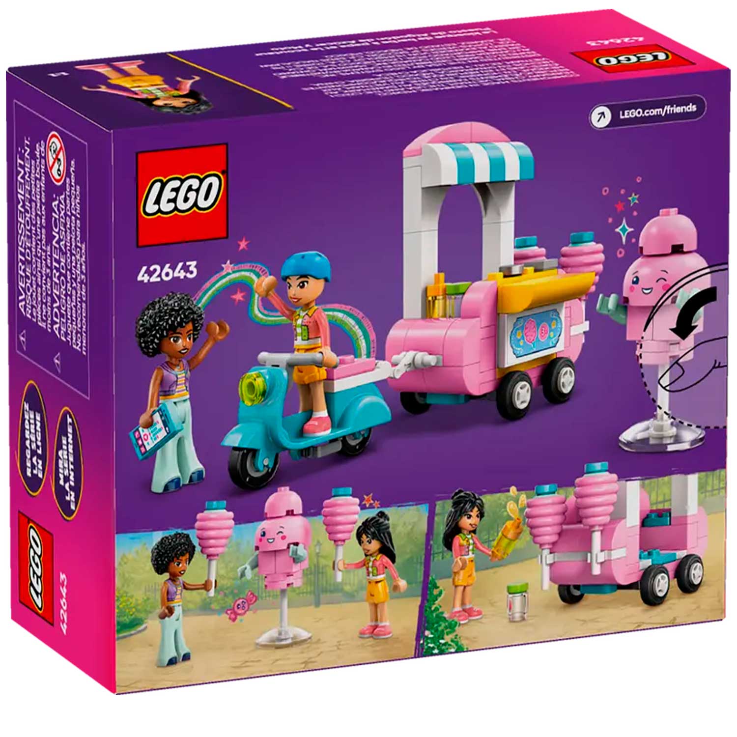 - в набор входят 2 минифигурки LEGO Friends (Лианн и Джамили), а также сборная фигурка-талисман из сахарной ваты и аксессуары