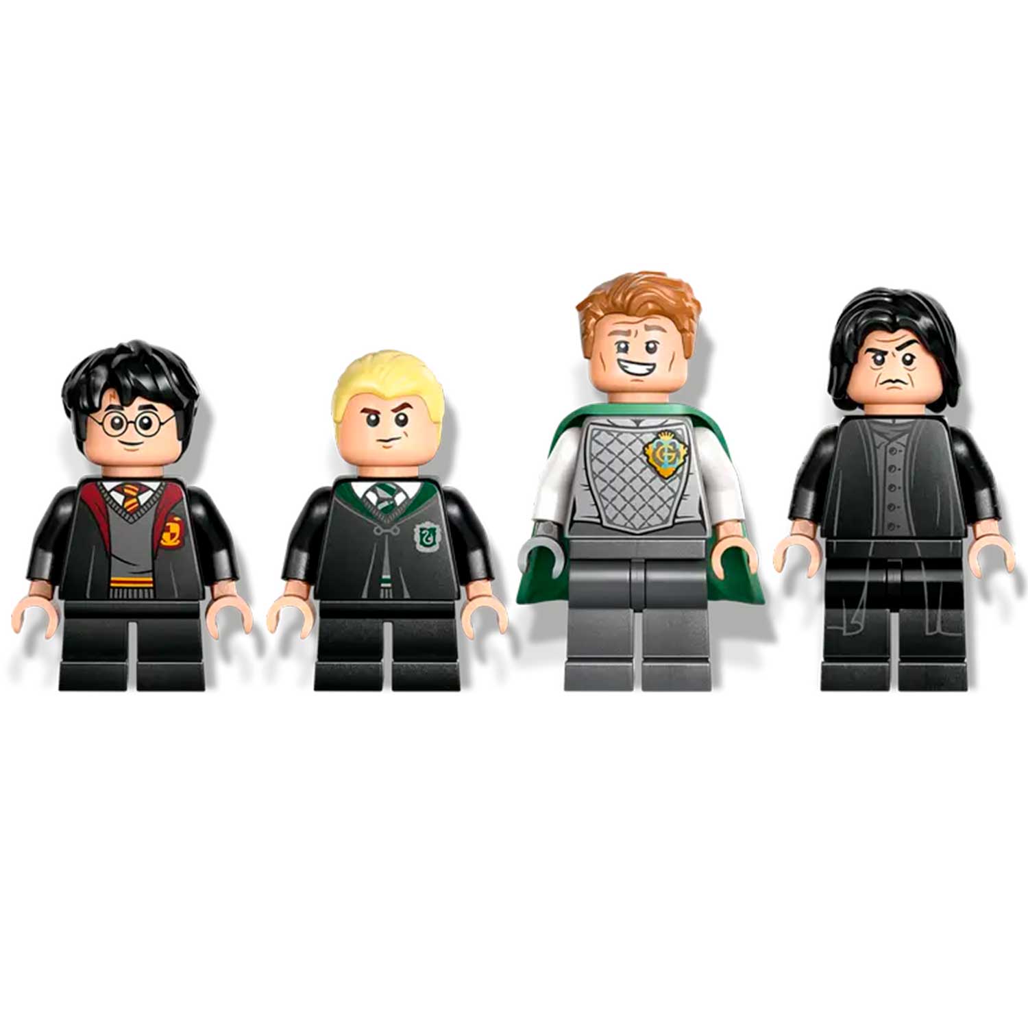 - 4 минифигурки в комплекте: Гарри Поттер и Драко Малфи с палочками и элементами заклинаний, а также Златоуст Локхарт и Северус Снейп
