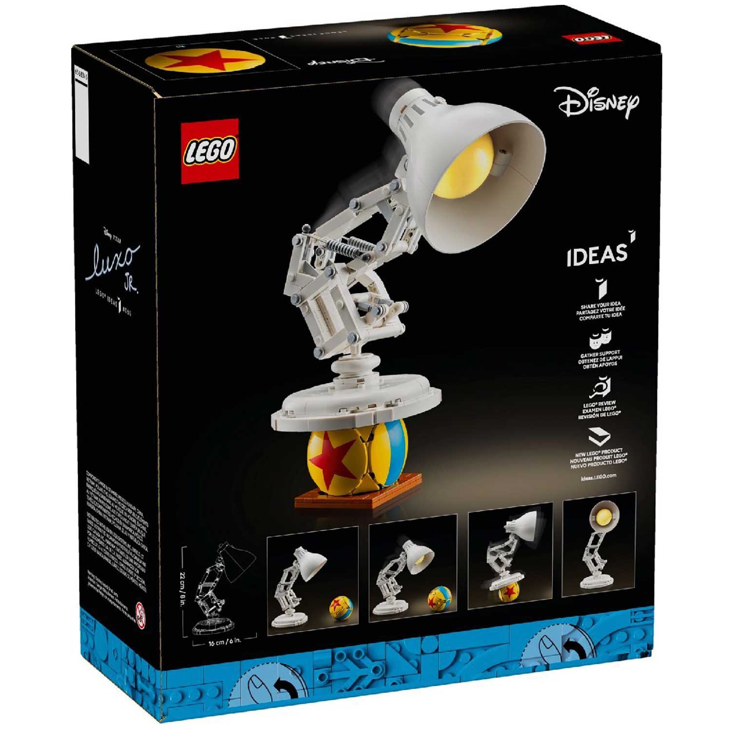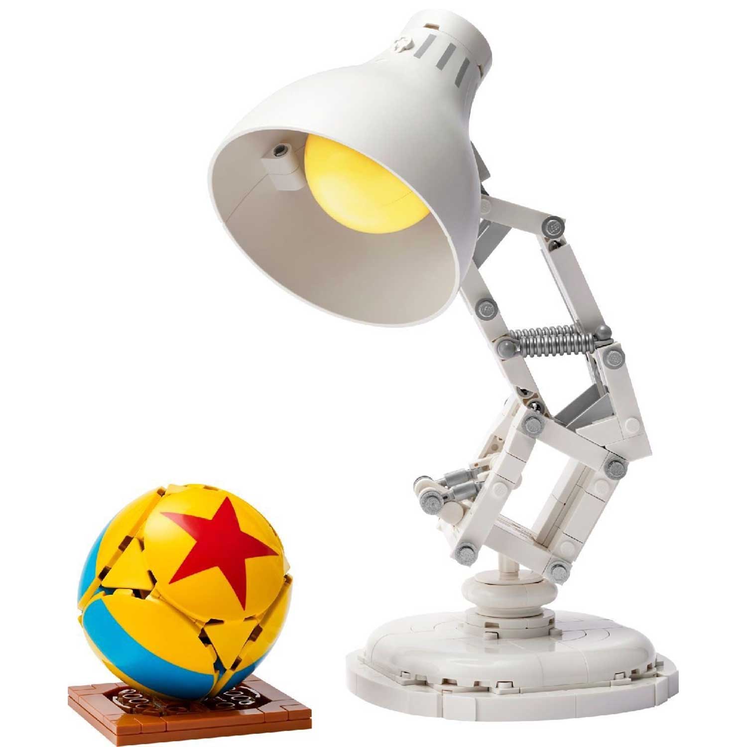 - набор позволяет воссоздать культовый образ модели знаменитой лампы Luxo Jr, знакомый каждому фанату Pixar, и дополнить его фирменным мячом с секретными отсылками к популярным мультфильмам студии