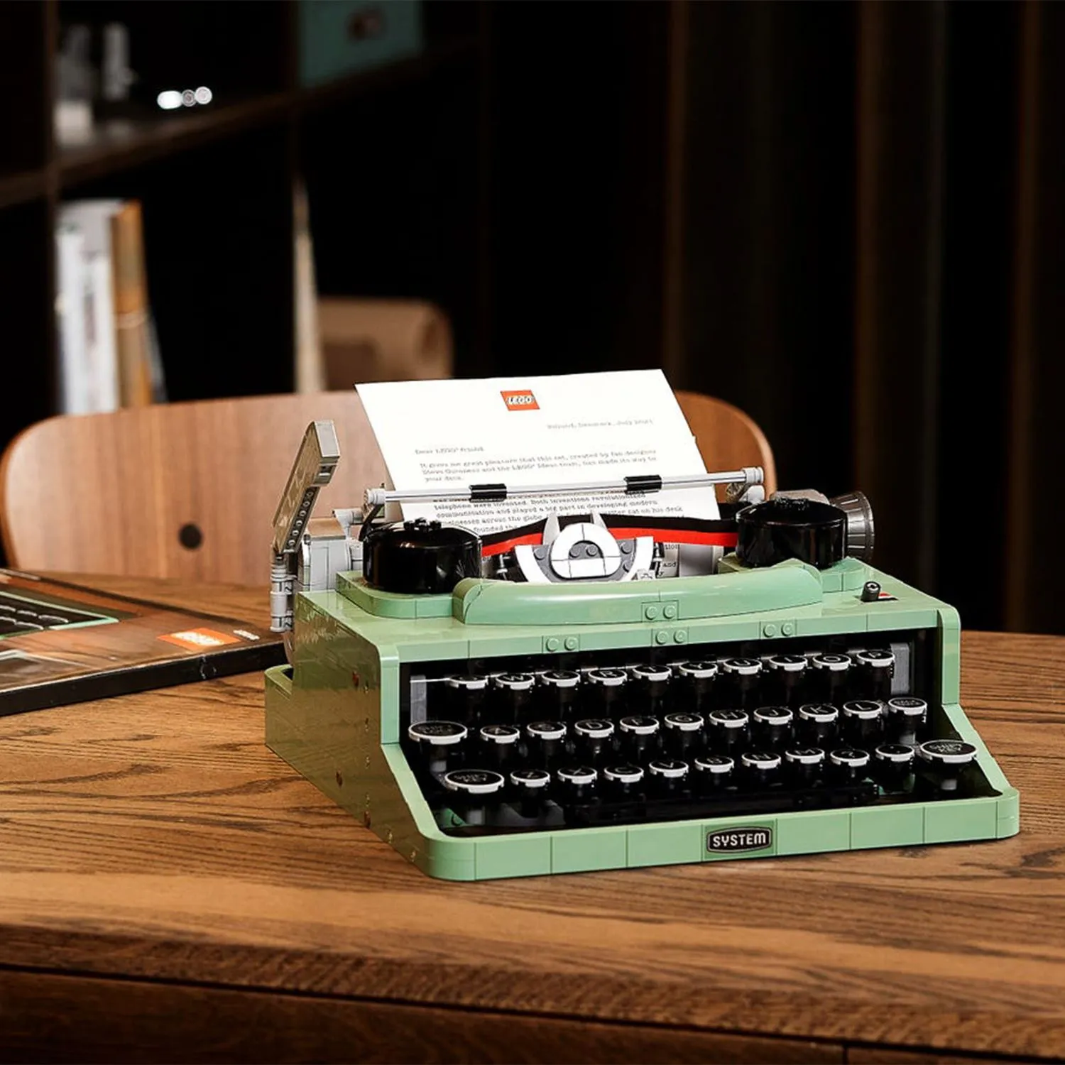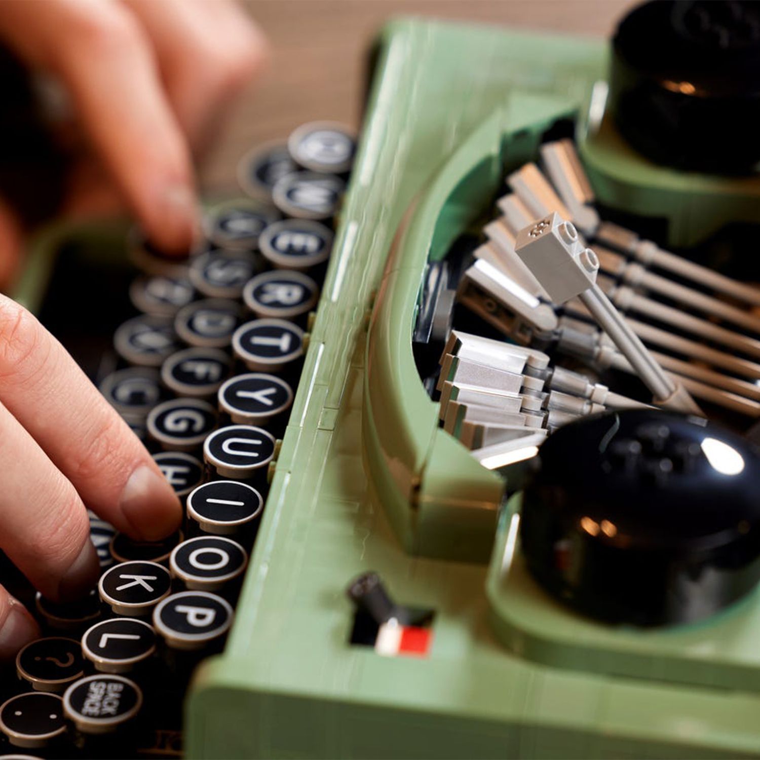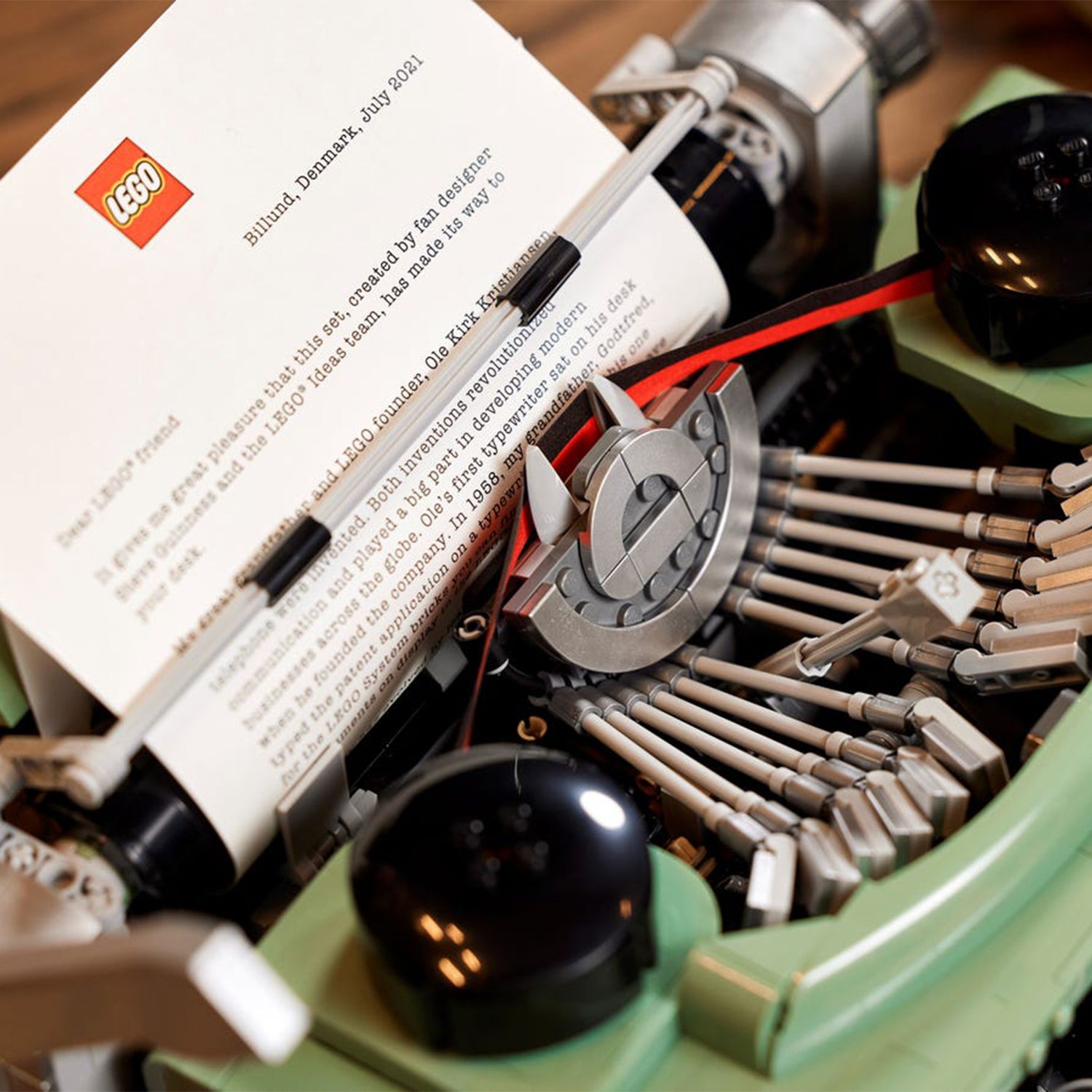 - дизайн вдохновлен классической печатной машинкой, которая была у основателя LEGO Group Оле Кирка Кристиансена, и она движется и звучит точно так же, как настоящая