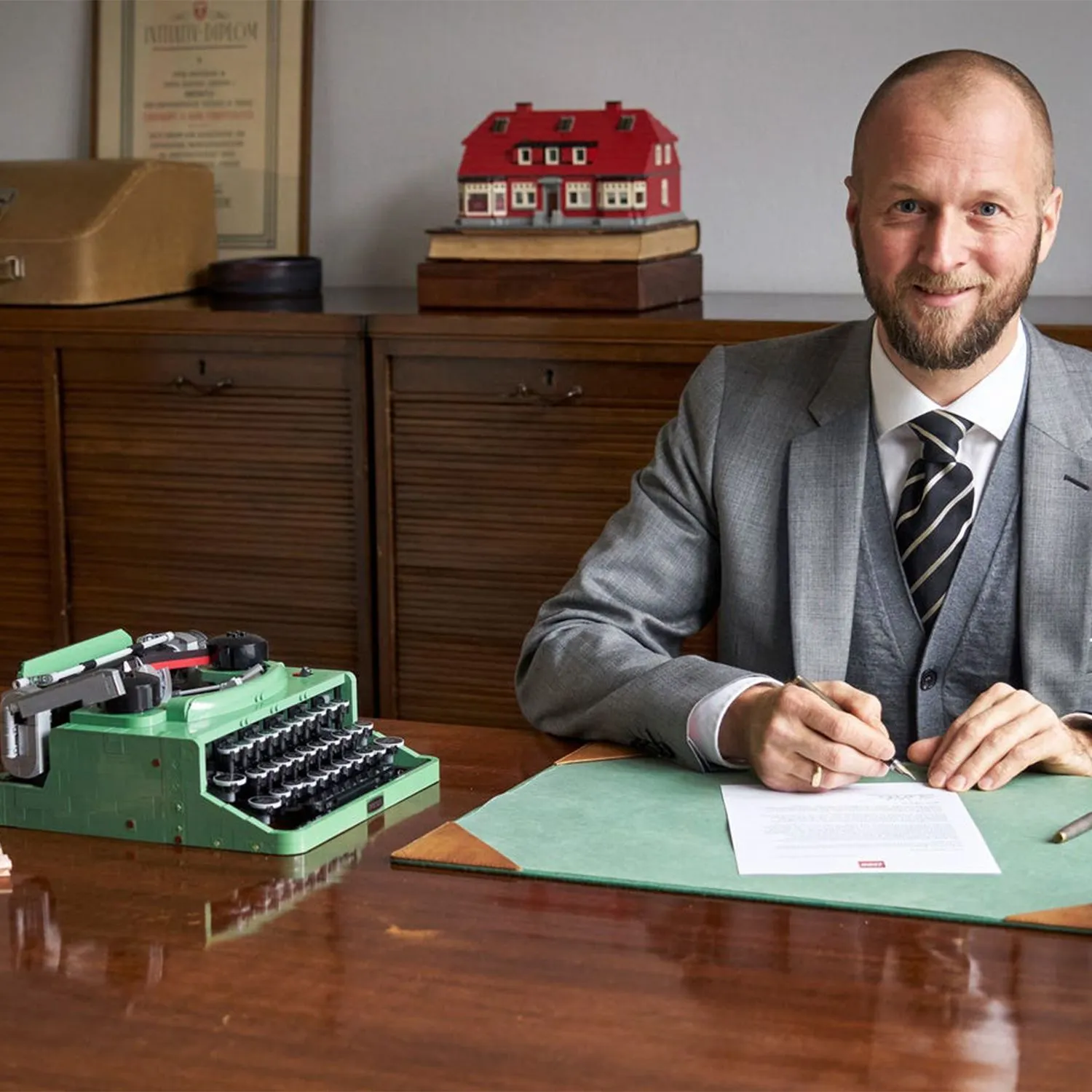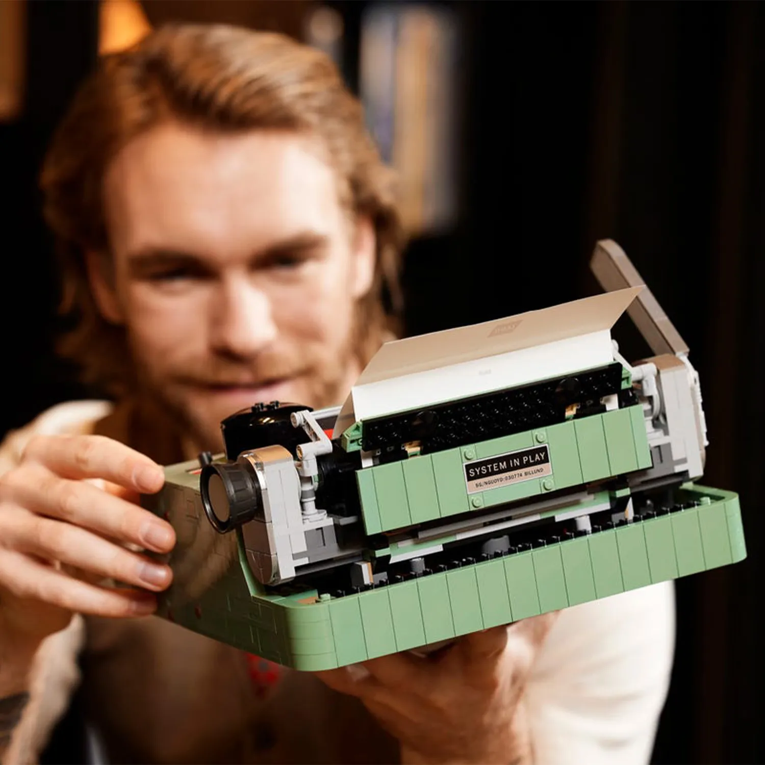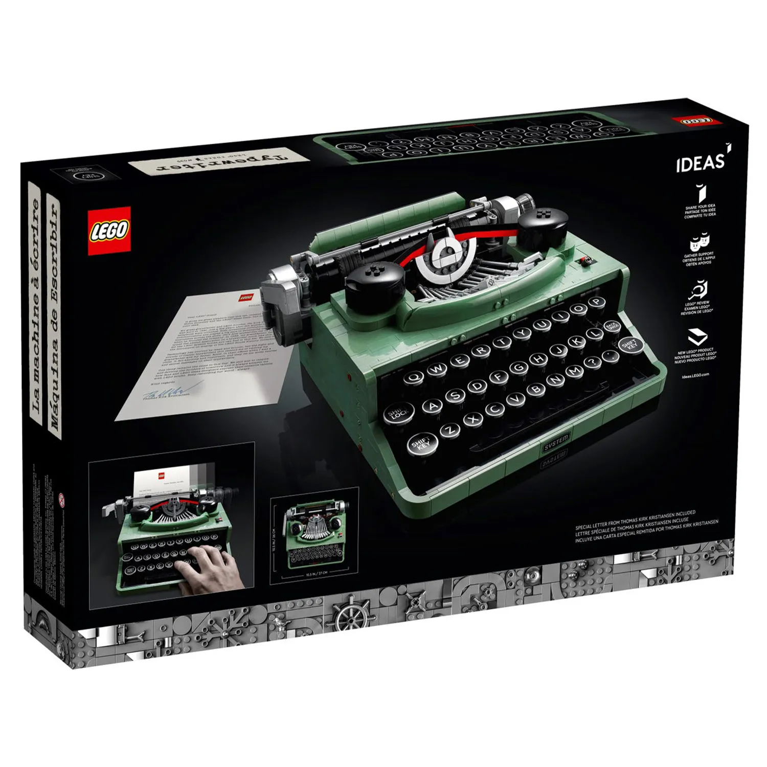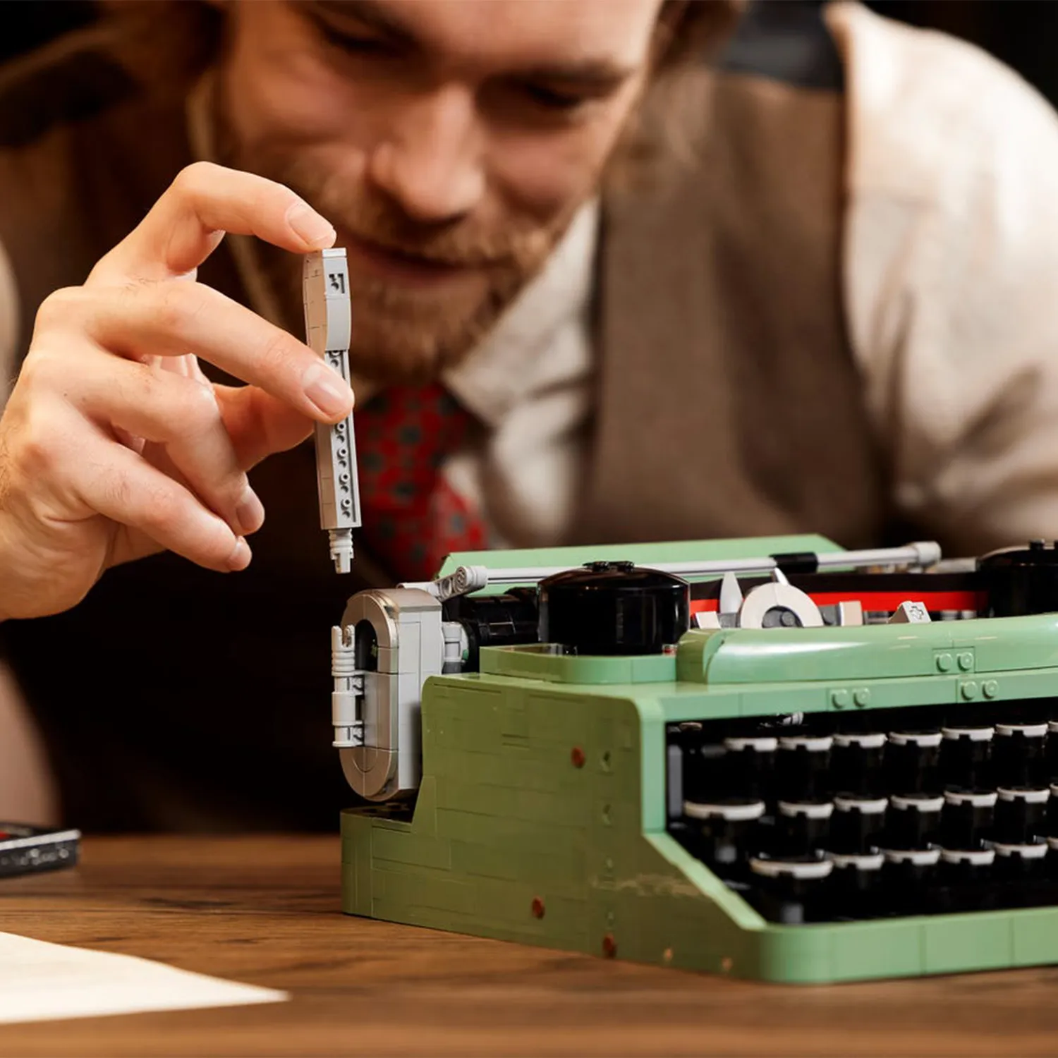 - дизайн вдохновлен классической печатной машинкой, которая была у основателя LEGO Group Оле Кирка Кристиансена, и она движется и звучит точно так же, как настоящая