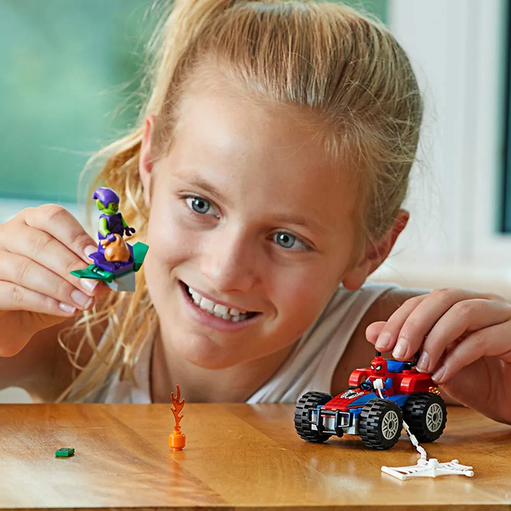 Из деталей набора вы можете собрать автомобиль Человека-паука и глайдер Зелёного Гоблина.