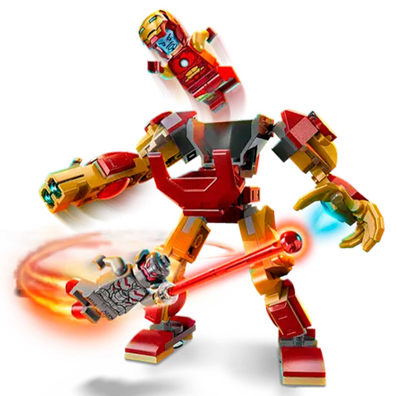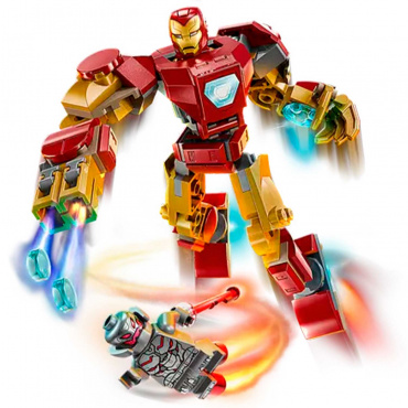 - набор включает полностью шарнирного робота с подвижными руками, ногами и пальцами и с открывающейся кабиной для минифигурки Железного человека