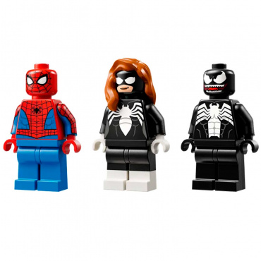 - в набор входят 3 минифигурки: Человек-паук с паутинным бластером, Веном с 4 щупальцами и Женщина-паук (Джулия Карпентер) с гибкой паутиной, которая достаточно велика, чтобы поймать злодея