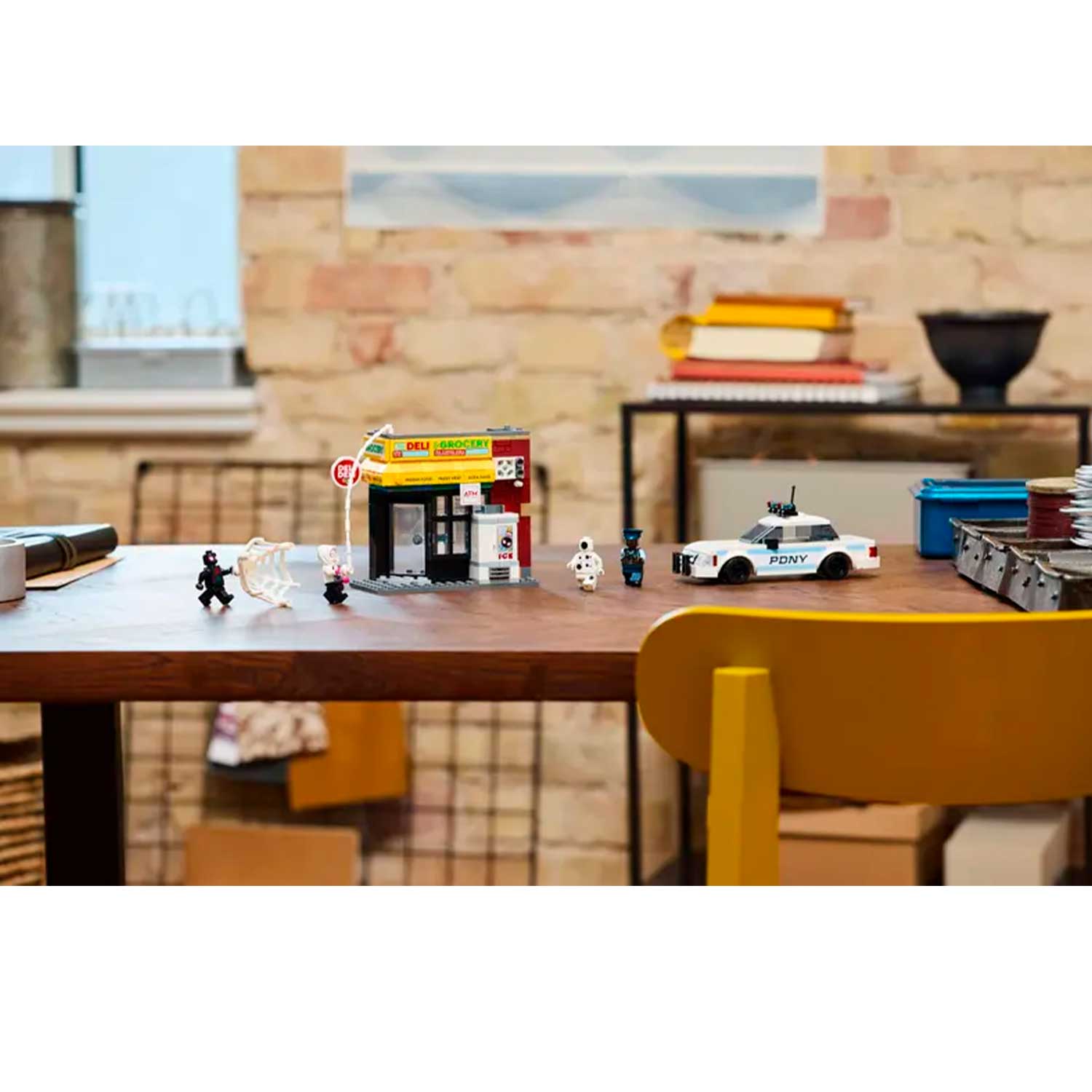 - в набор также входит полицейская машина офицера Джефферсона, которая открывается, позволяя детям разместить внутри 2 минифигурки LEGO Marvel