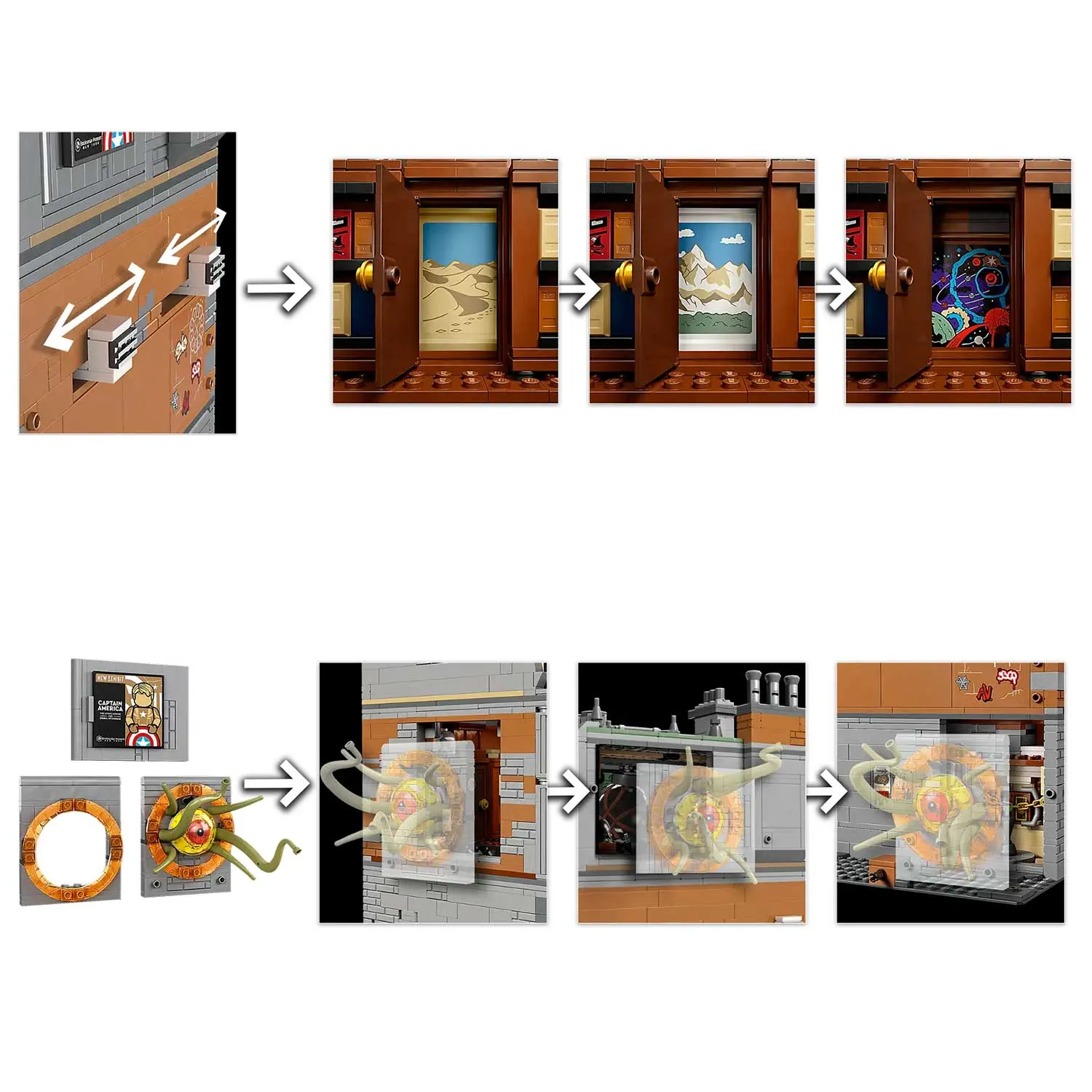 - в Святилище Санкторум, печально известной резиденции Доктора Стрэнджа, собраны классические сцены из фильмов Marvel Studios «Мстители: Война бесконечности» и «Доктор Стрэндж в мультивселенной безумия»