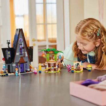 - множество персонажей: в комплекте 6 минифигурок – Грю, Люси, Марго, Эдит, Агнес и Бэби, а также 3 большие сборные фигурки миньонов – Мэл, Джерри и Тим