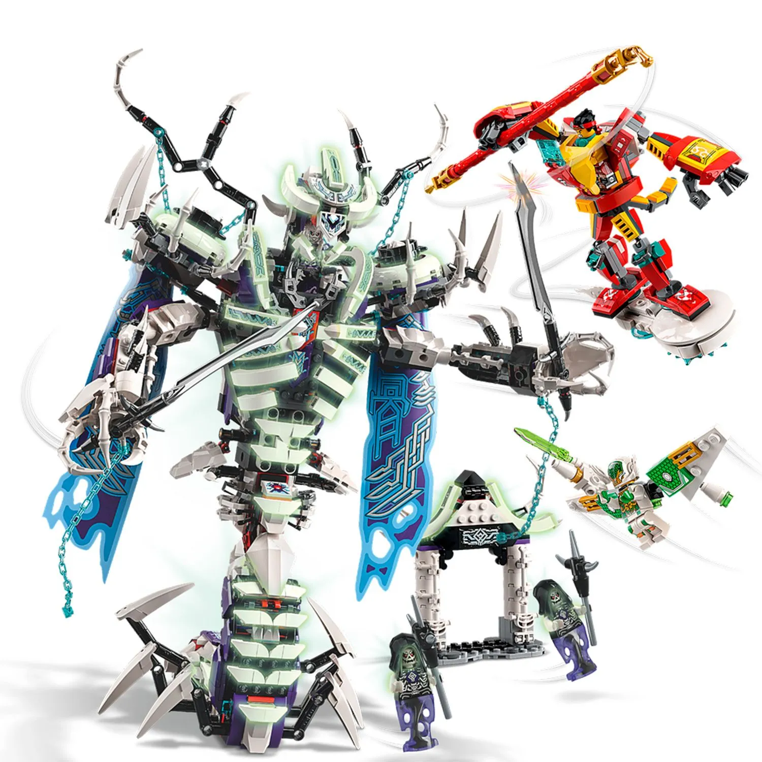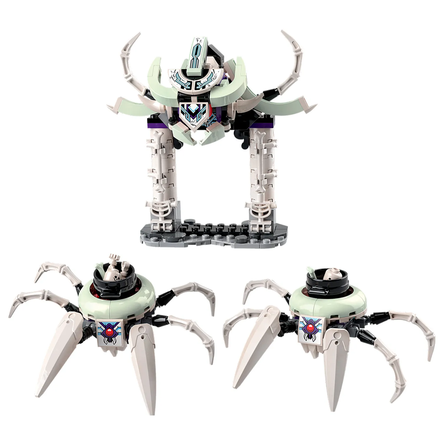 - склеп, два костяных паука, костяной губитель и костяной скорпион вместе собираются в костяного демона, когда дети воссоздают классическую историю троекратной победы над Костяным демоном с этим набором