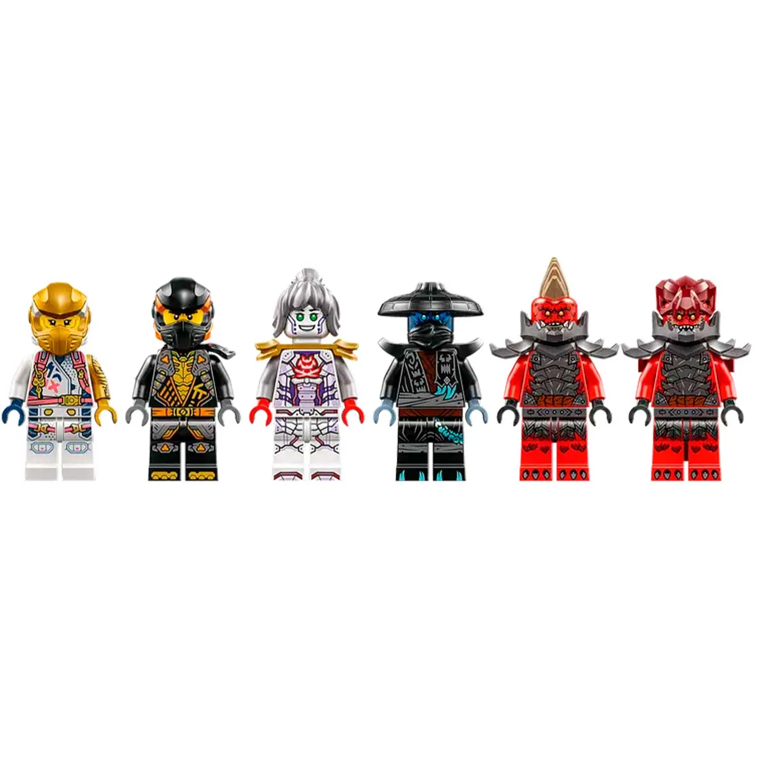 - вы комплекте 6 минифигурок: Сора, Коул, Пиксал и Нокт, а также 2 злодея-драконианца