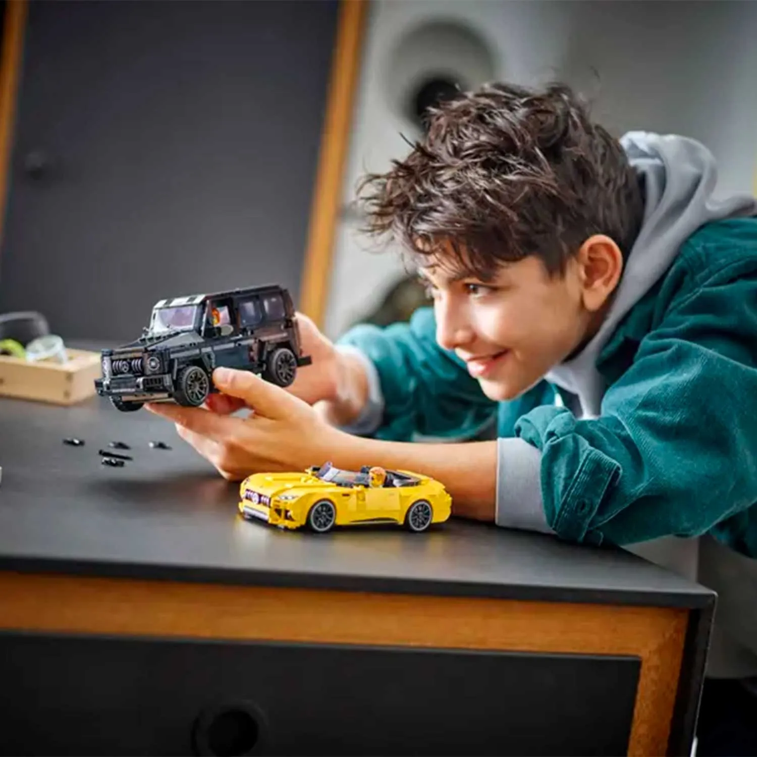 - в набор входят 2 минифигурки водителей в костюмах Mercedes-AMG, которые можно посадить за руль автомобилей для динамичных гонок