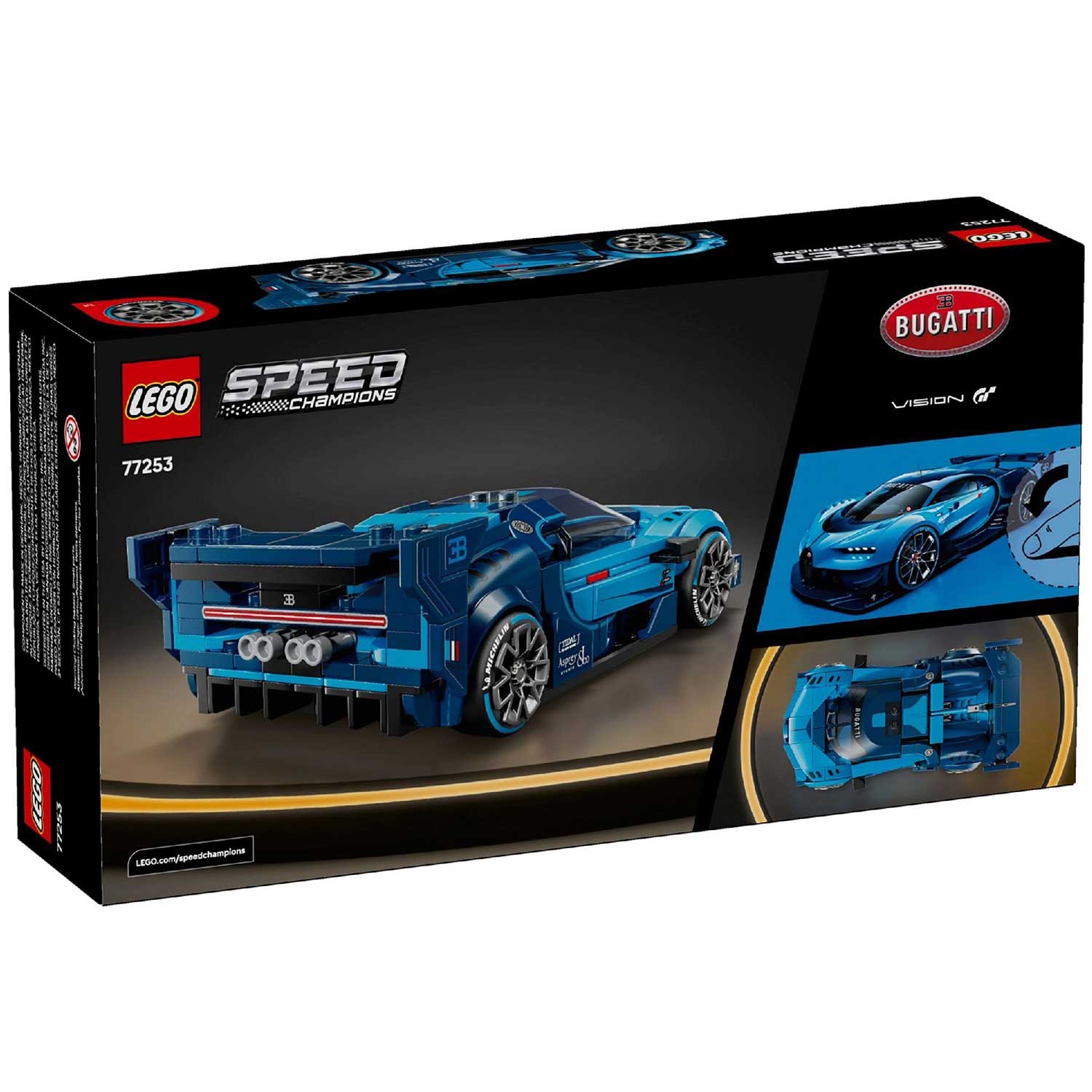 - набор включает в себя детали от автомобиля, созданного Bugatti для видеоигры Gran Turismo в 2015 году, в том числе переднюю решетку в форме подковы, заднее антикрыло, широкие шины с надписью «Michelin»и 8-глазные фары