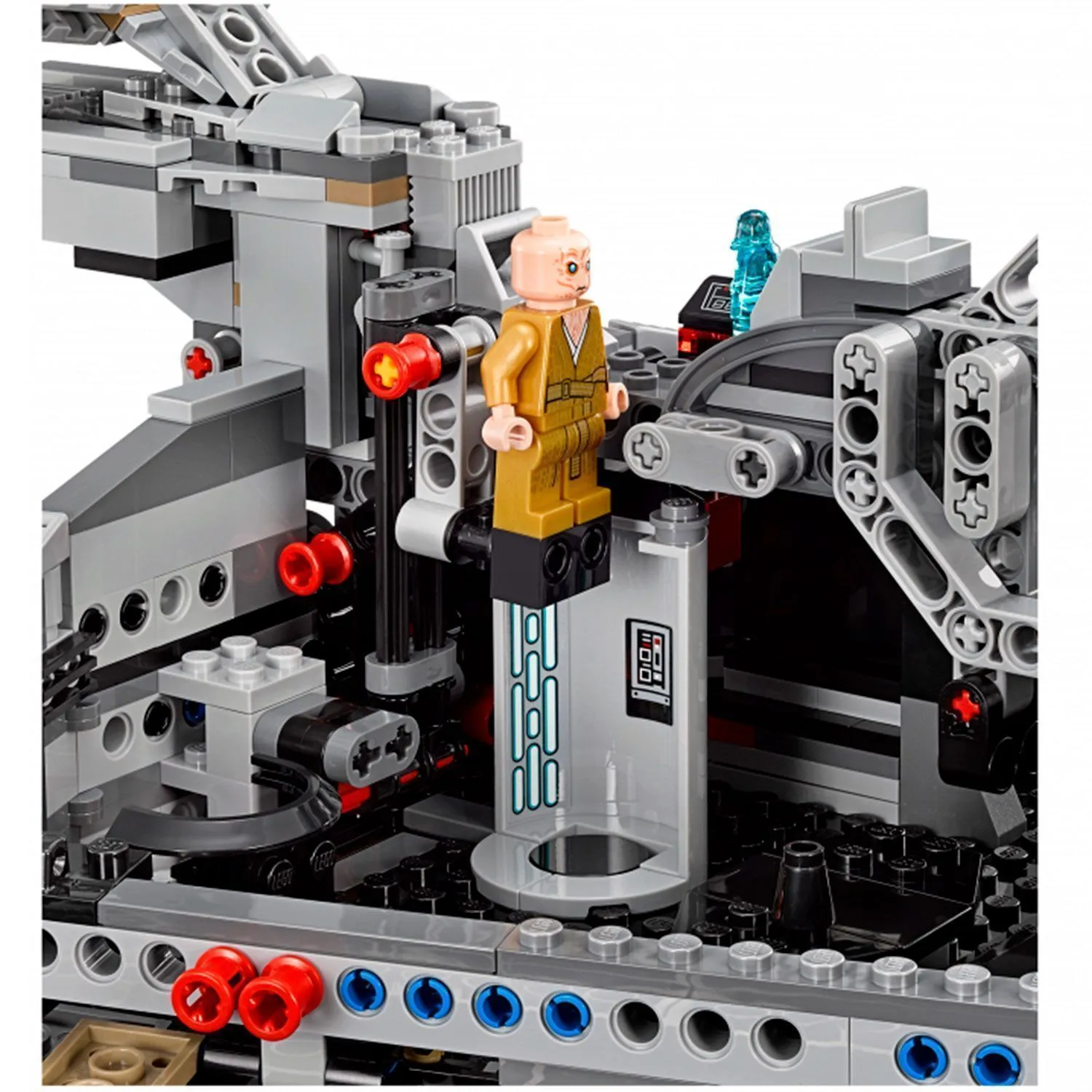 Помимо отсеков с панелями управления и пассажирских отсеков, в модели появилась новая игровая функция – подъемник к переговорной панели, на которой устанавливается «голографическое изображение» собеседника, а проще говоря – полупрозрачная микр-офигурка некого загадочного человека в плаще с капюшоном (скорее всего это Кайло Рен).