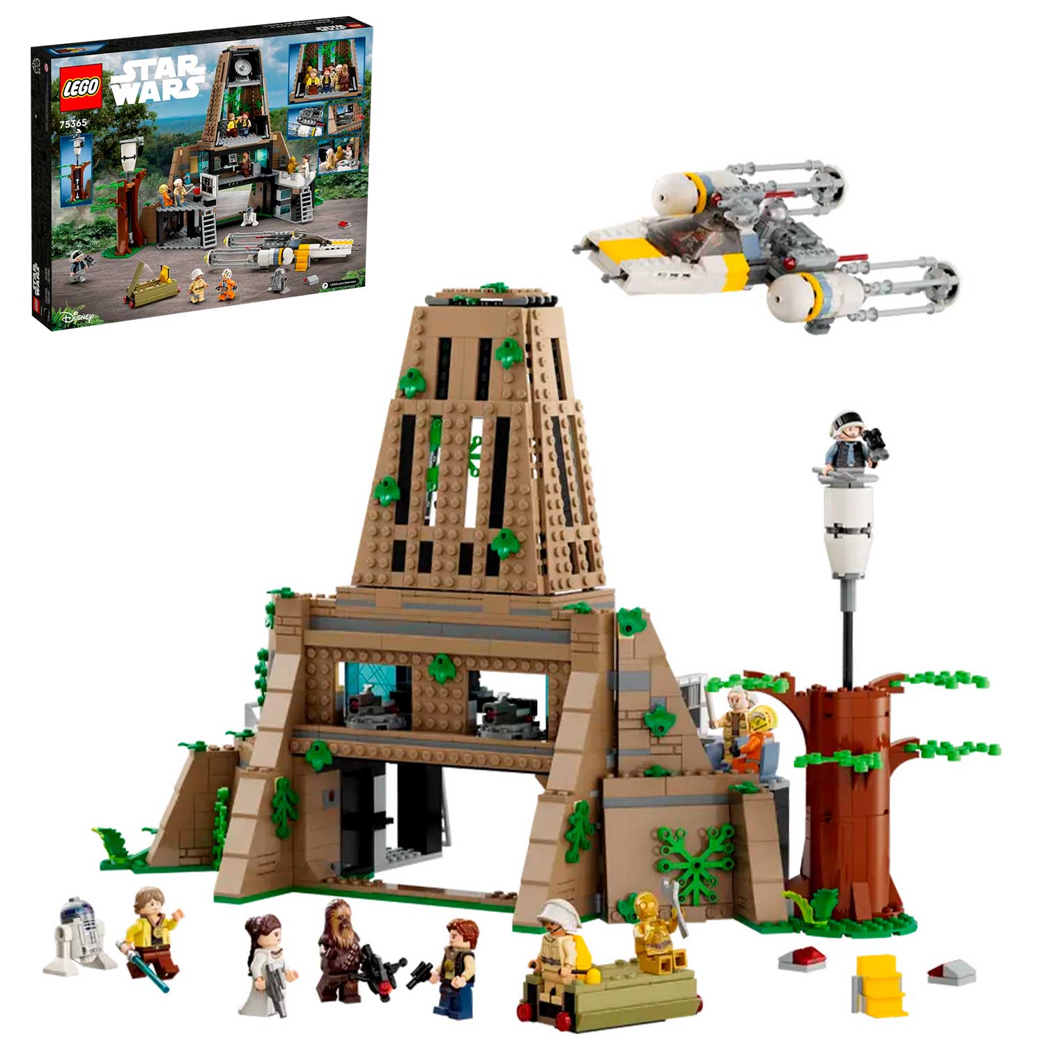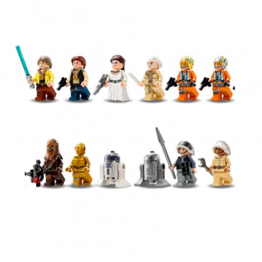 - в комплекте :10 мини-фигурок LEGO( Люк Скайуокер, принцесса Лея, Хан Соло, Чубакка, C-3PO, генерал Додонна, Джон Вандер, Гарвен Дрейс, солдат флота повстанцев и команда повстанцев), а также фигурки дроидов LEGO R2-D2 и R2-BHD
