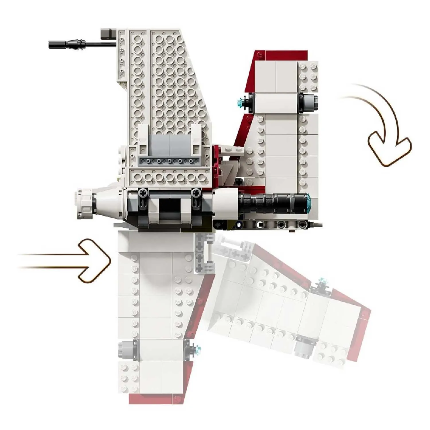 - модель оснащена подвижными крыльями, которые можно регулировать для разных режимов полёта, а также шутерами для имитации боевых действий