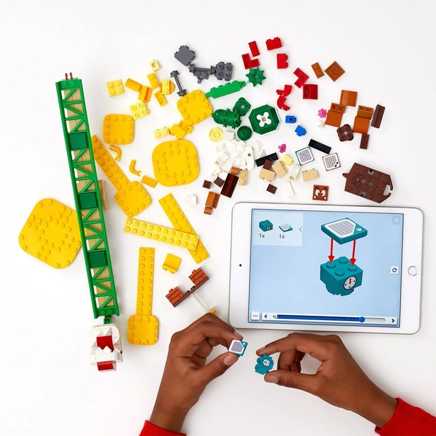 - в каждом конструкторе лежат активационные кубики, с которыми взаимодействует фигурка Марио