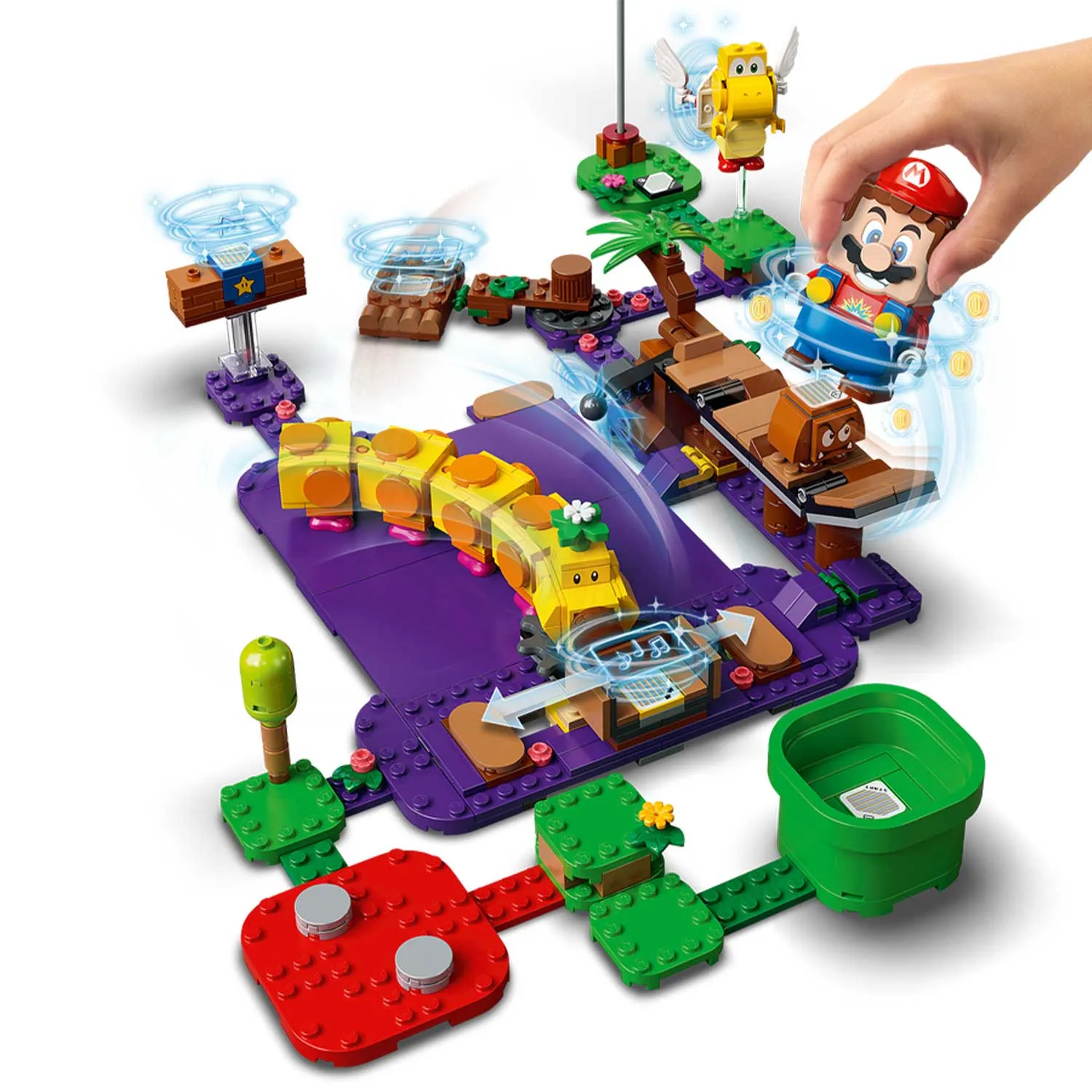 - персонаж Марио оснащен динамиком, ведет подсчет "монет", может выражать эмоции, а также способен распознавать цвета блоков при помощи особого сенсора
