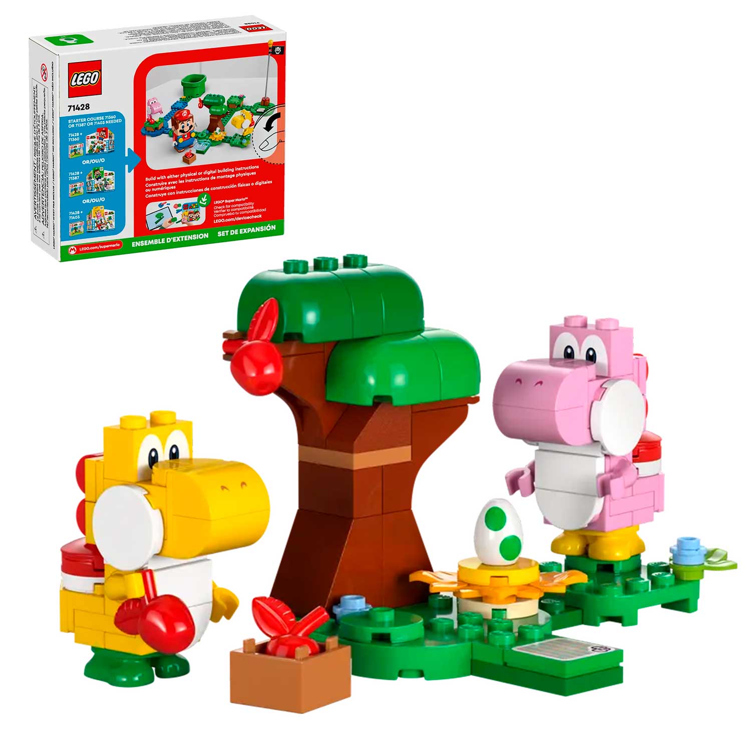- набор LEGO 71428 Супер Марио "Удивительный лес Йоши" включает дерево, построенное из кубиков и 2-x персонажей Super Mario™