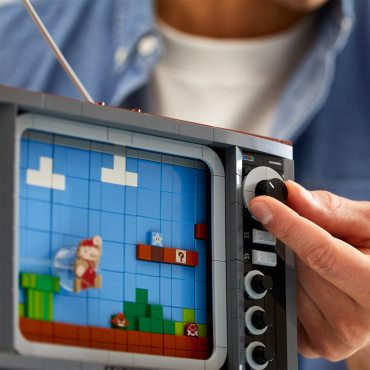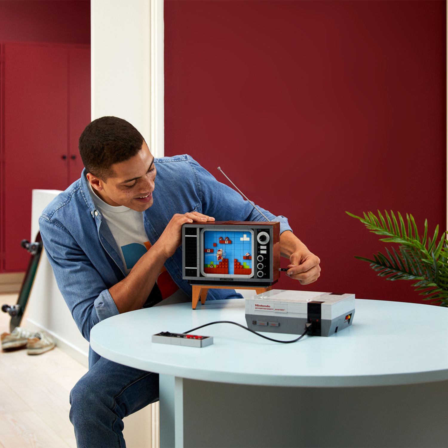 - cобранная из кубиков приставка NES дополнена множеством реалистичных деталей: открывающимся отсеком для игрового картриджа с функцией блокировки и джойстиком с соединительным проводом и вилкой