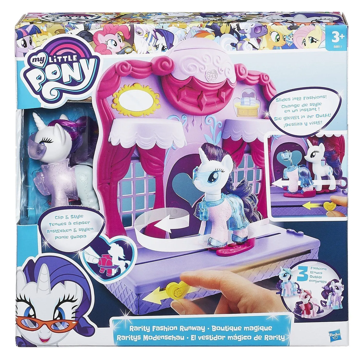 Игровой набор "Май Литл Пони" от торговой марки Hasbro представляет собой комплект предметов, с которыми девочка сможет организовать бутик Рарити в Кантерлоте.
