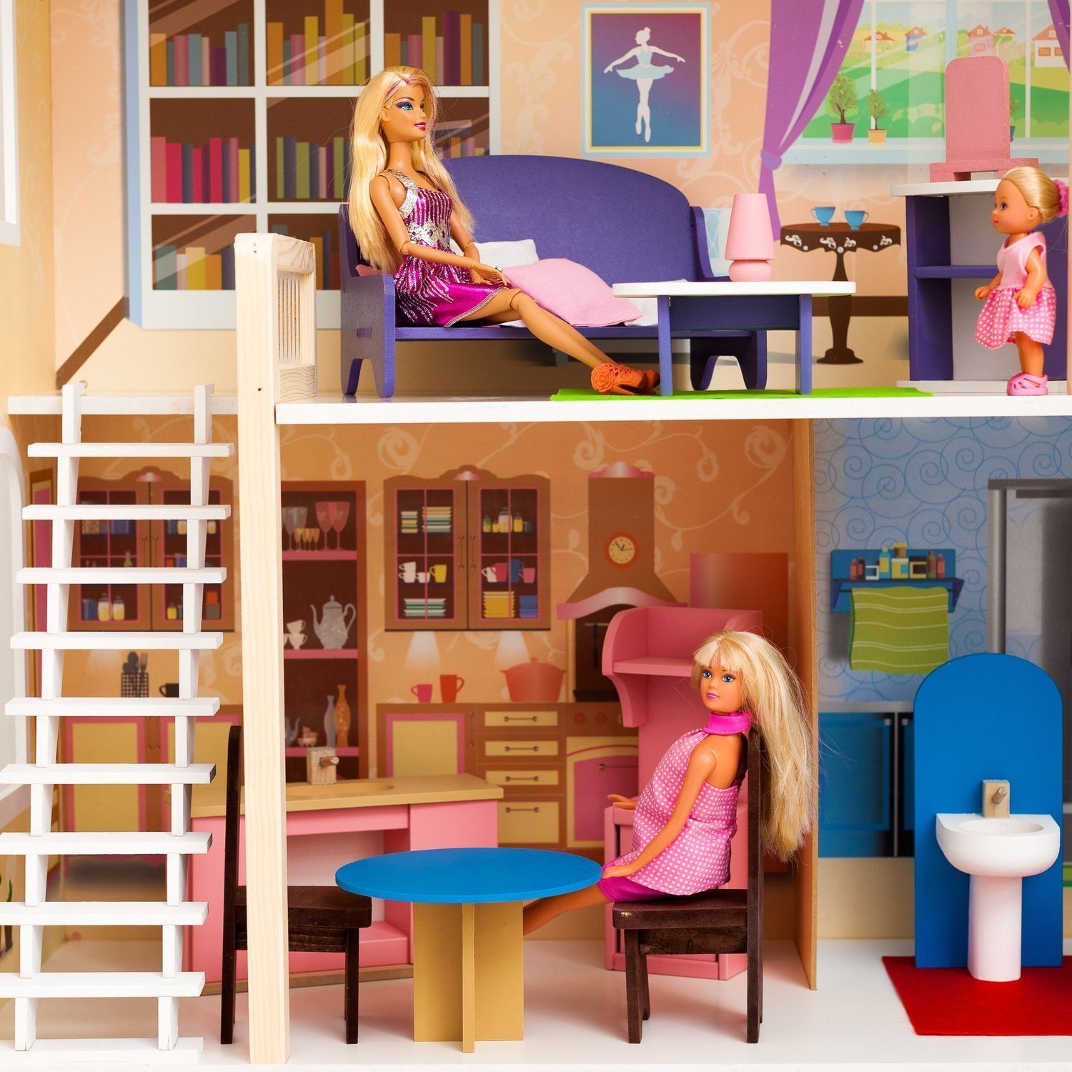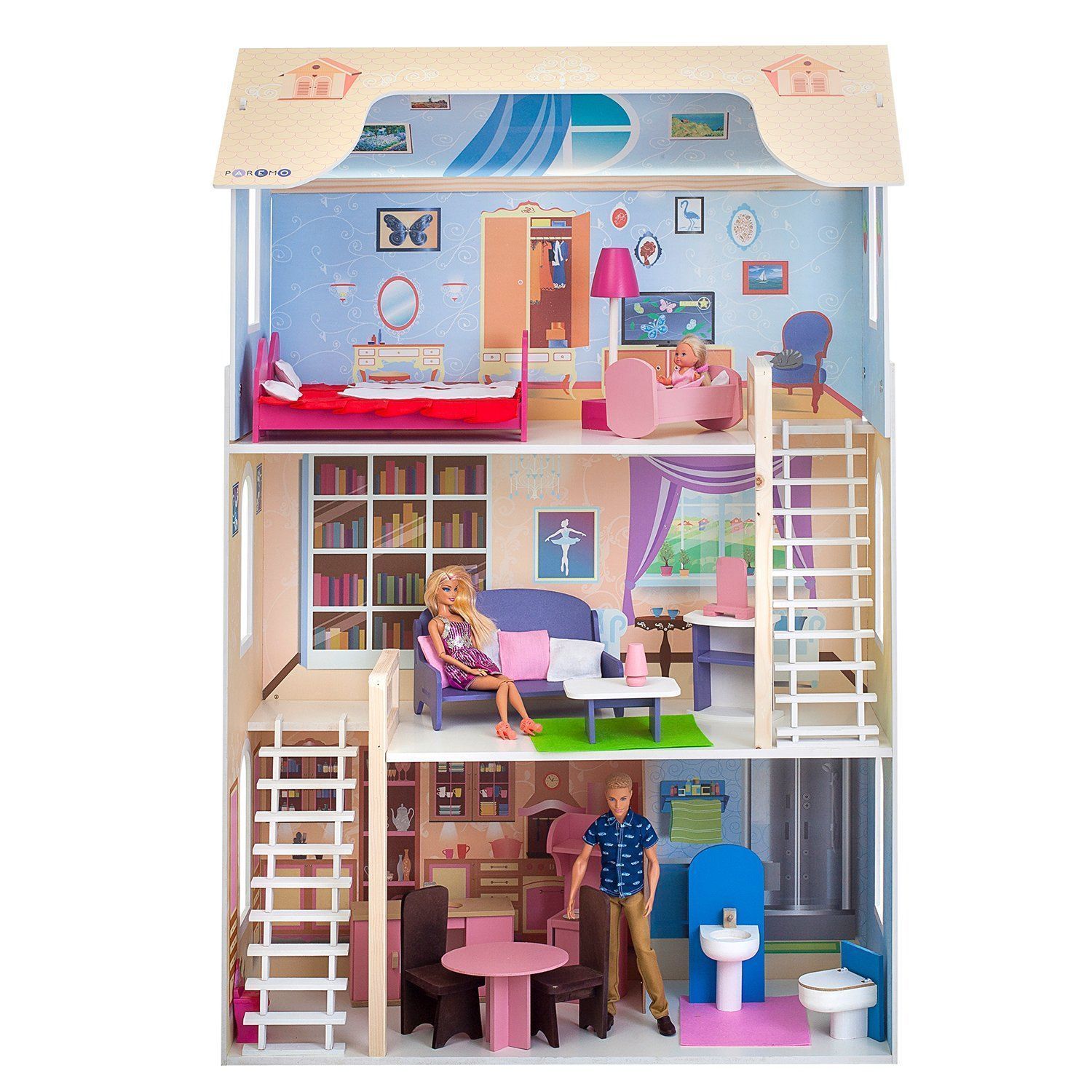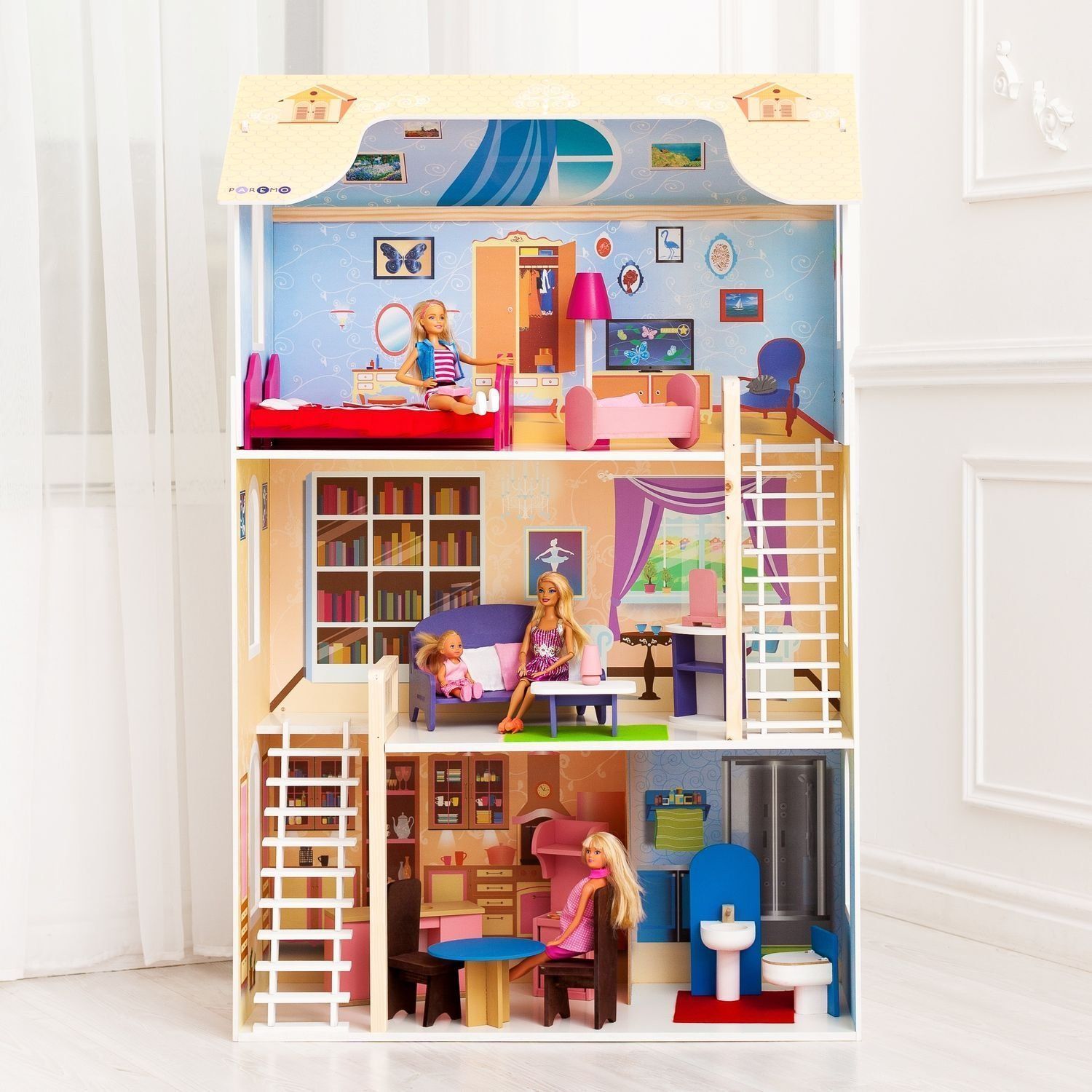 PD315-02 Деревянный кукольный домик "Шарм" с мебелью, 16 предметов, для кукол 30 см