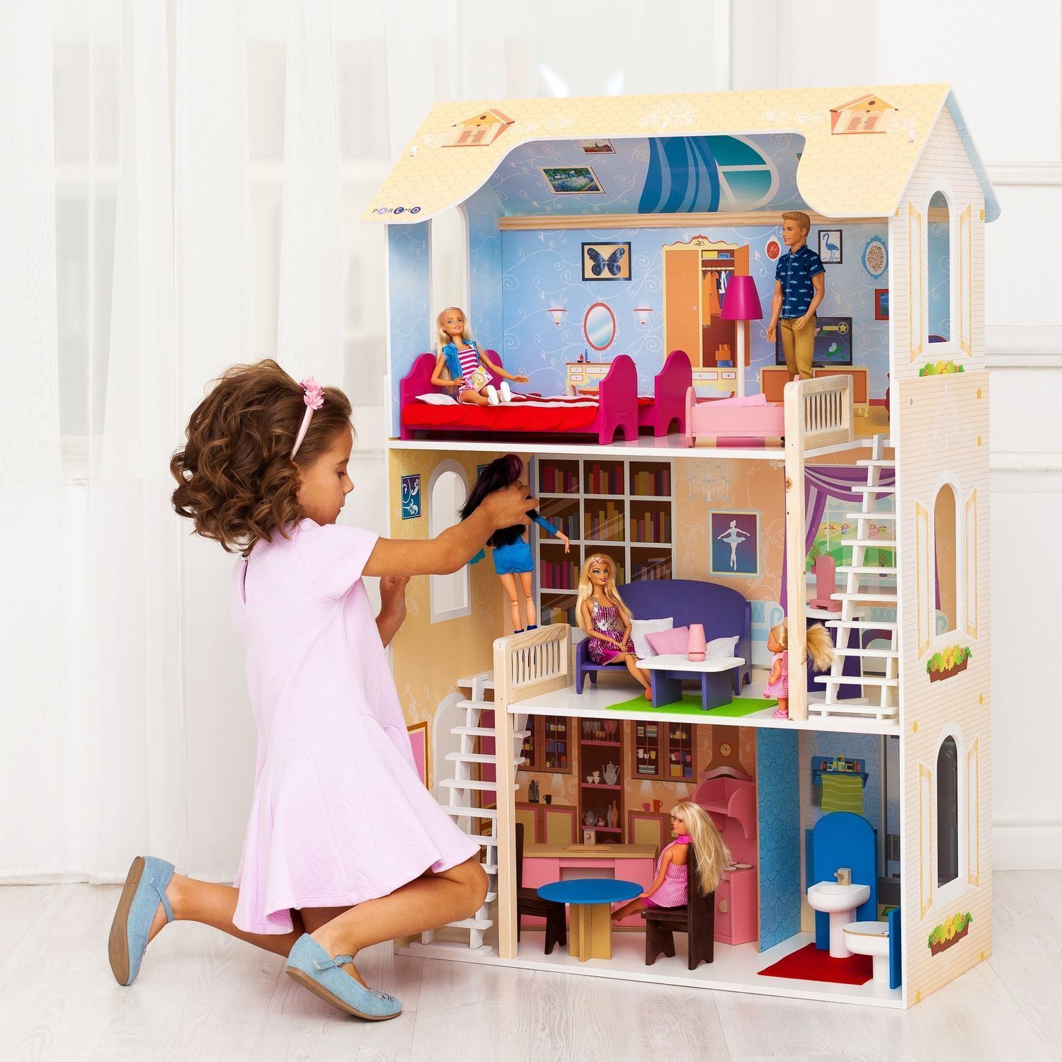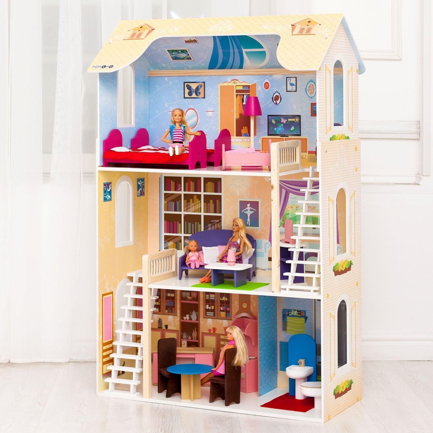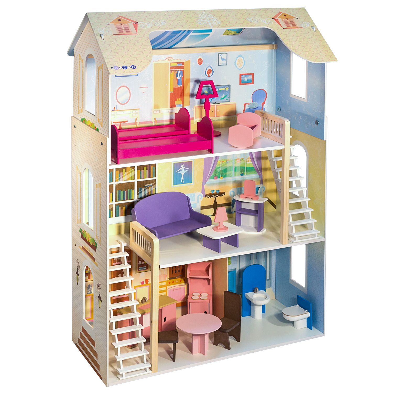 PD315-02 Деревянный кукольный домик "Шарм" с мебелью, 16 предметов, для кукол 30 см