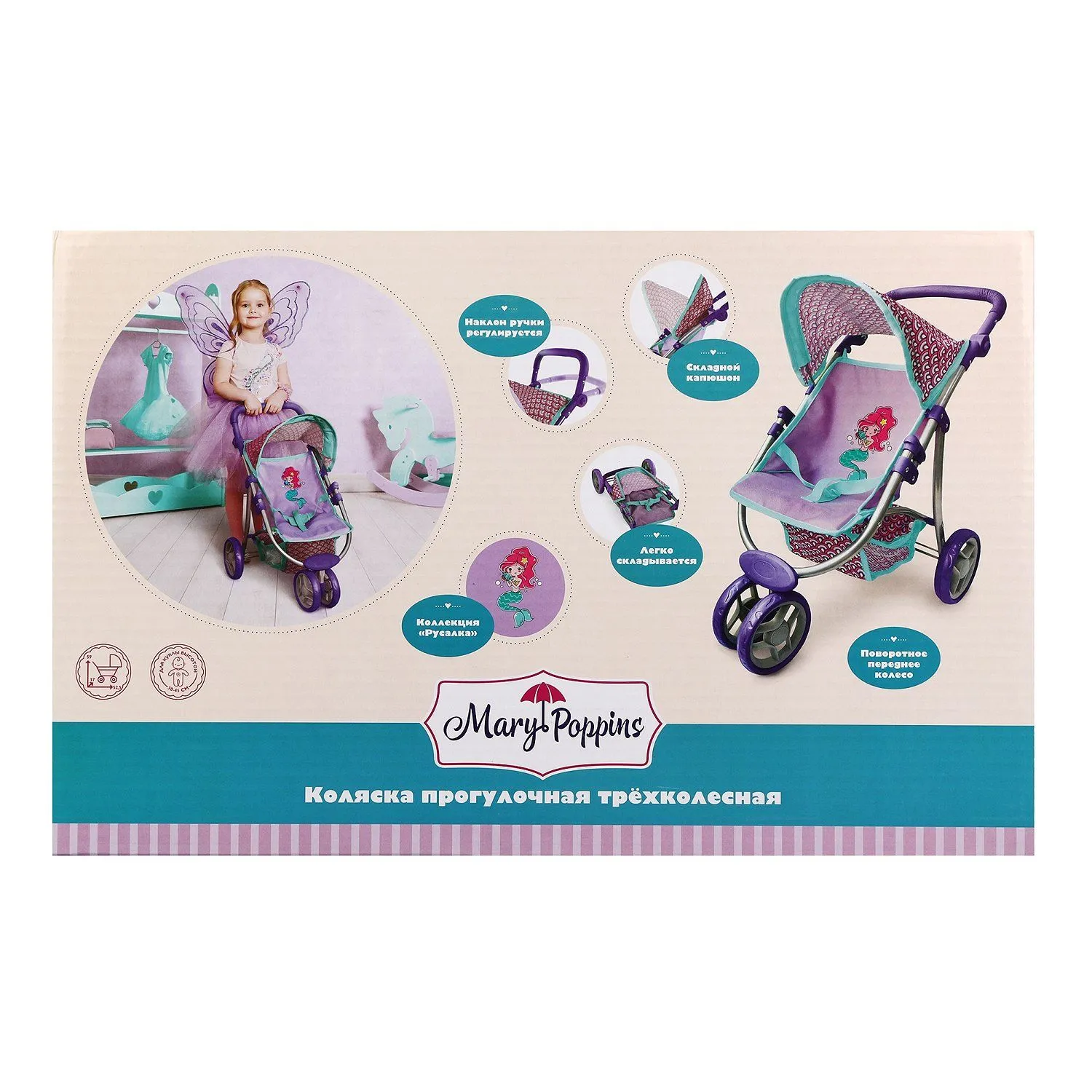 Трёхколёсная прогулочная коляска «Русалка» станет самым незаменимым аксессуаром среди предметов игрового обихода у девочки!