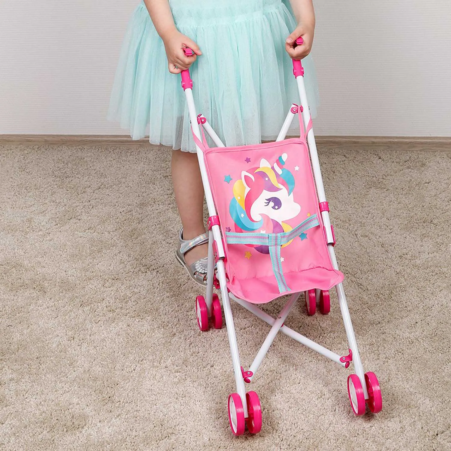 Прогулочная коляска "Единорог" станет самым незаменимым аксессуаром среди предметов игрового обихода у девочки!