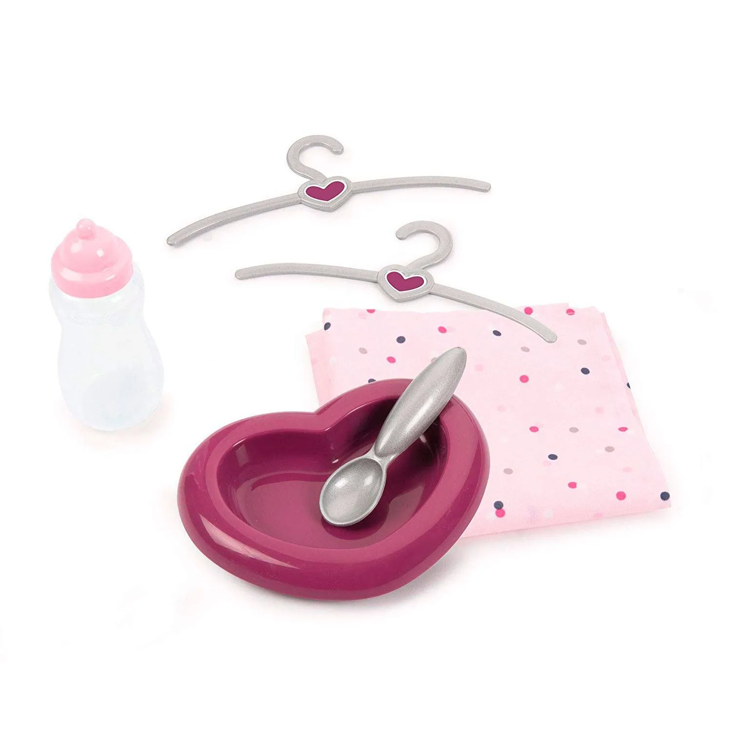 - реалистичные игровые аксессуары в виде тарелочки с ложечкой, бутылочки, вешалок для одежды и пеленки
