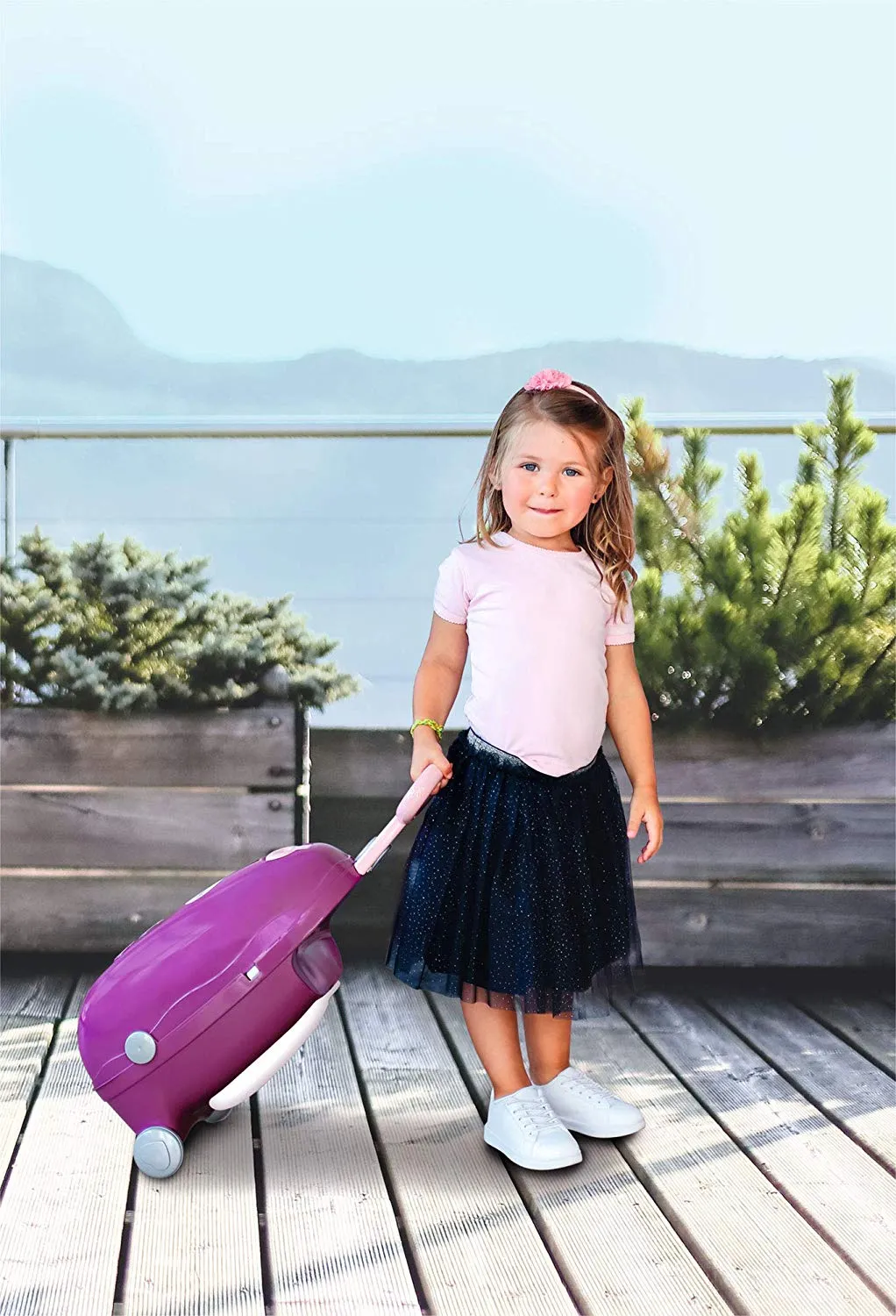 Но больше всего малышкам понравится упаковка, напоминающая яркий чемоданчик на колесиках с удобной ручкой для перевозки.