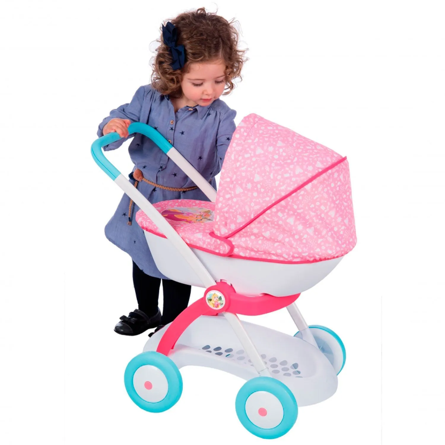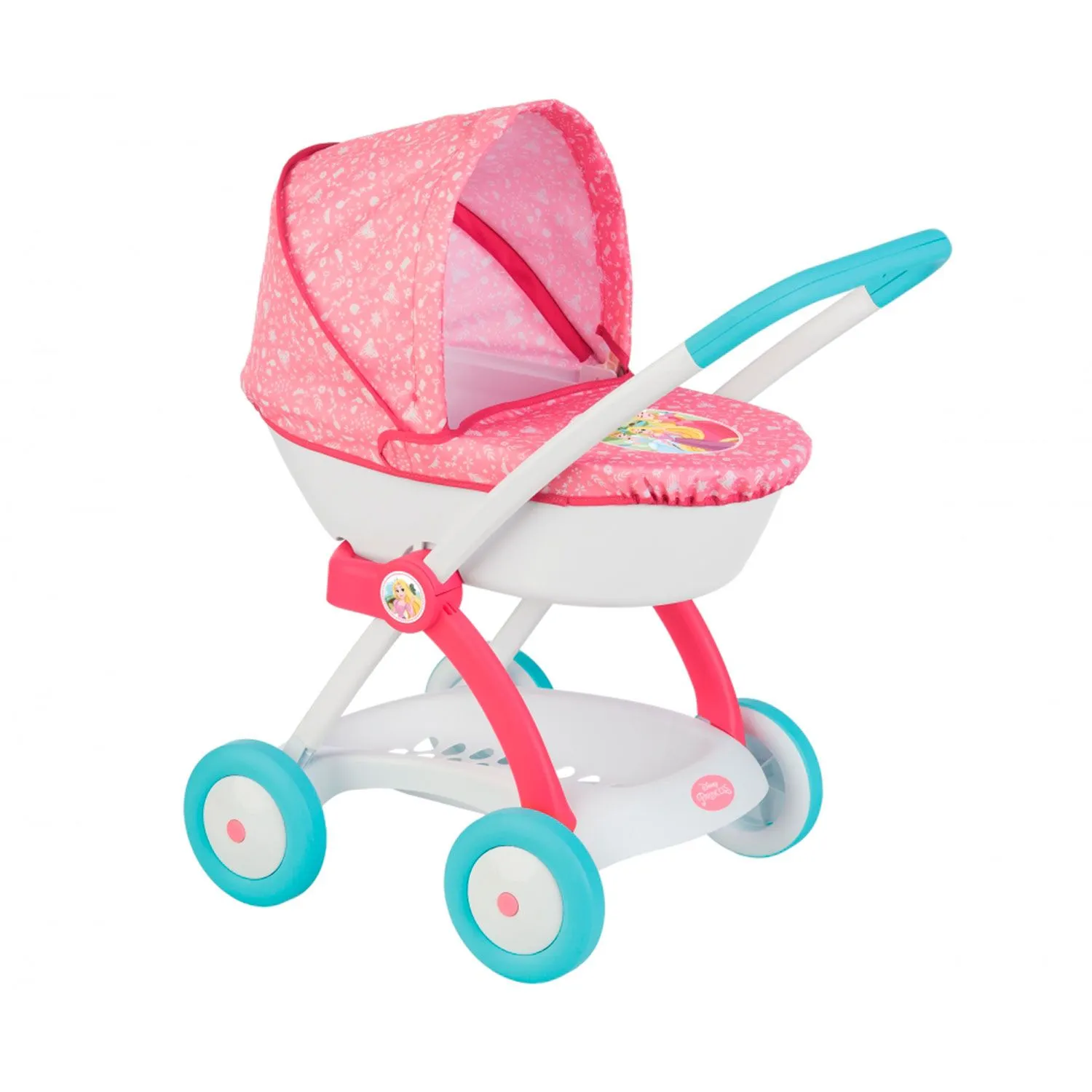 Очень красивая коляска Дисней Принцессы для прогулок с корзиной от компании производителя Smoby сможет расширить спектр сюжетно-ролевых игр вашей дочки.