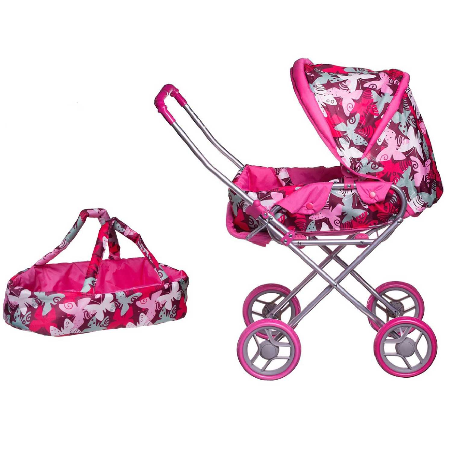 - в прогулочном варианте подойдет для перевозки кукол и пупсов высотой до 60 см, а внутри люльки можно разместить лежа куклу или пупса высотой до 40 см
