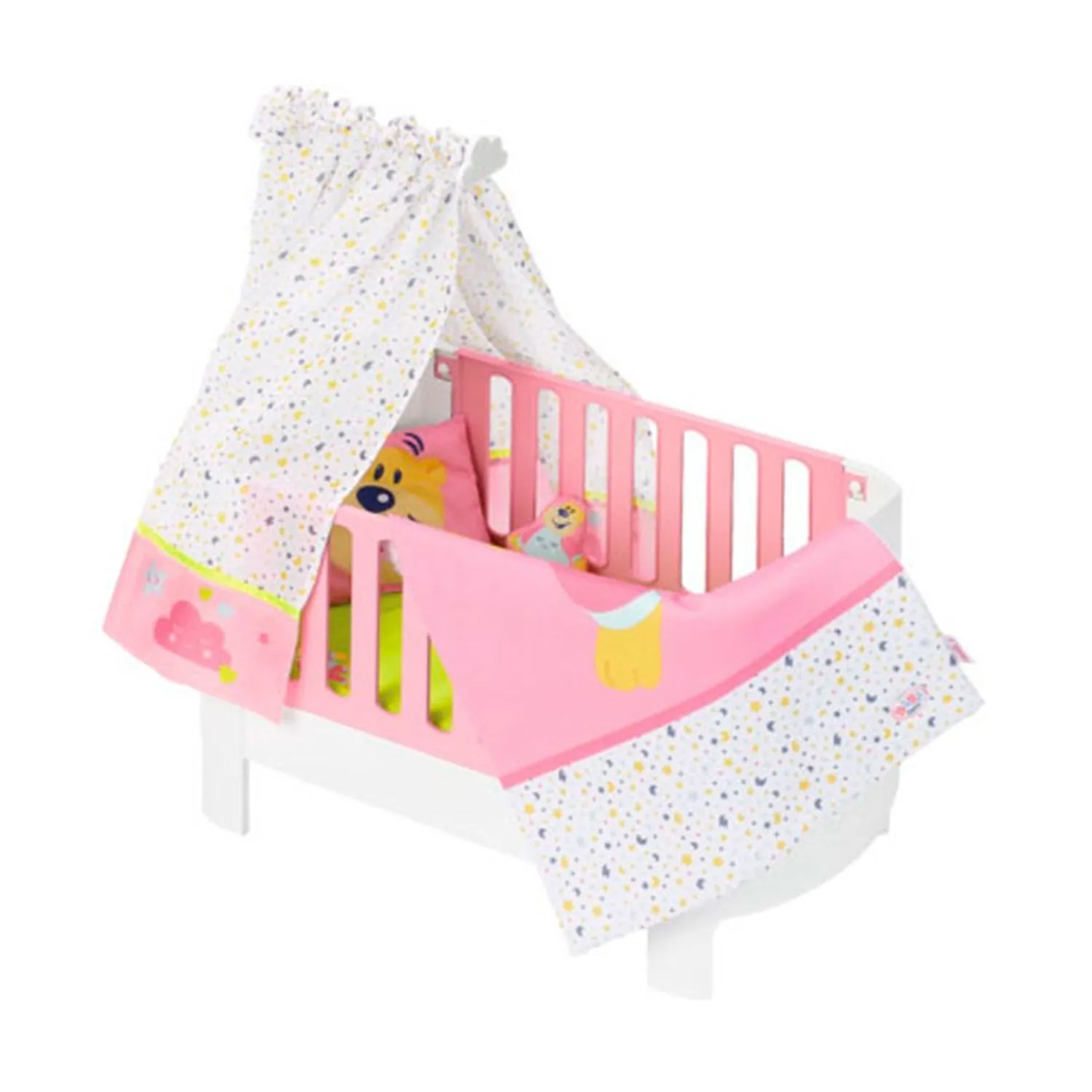 Удобная со звуковым эффектом убаюкивания кроватка розового цвета обеспечит комфортный спокойный сон малышки Baby Born.