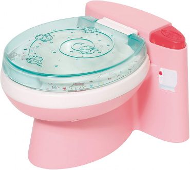Унитаз для куклы Аннабелль розовый, с прозрачной рельефной крышкой.