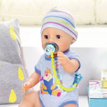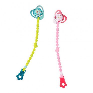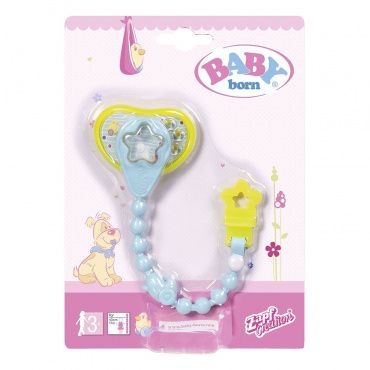 - соска выполнена в ярком цвете, на звеньях цепочки очерчены буквы, складывающиеся в слово «Baby born»