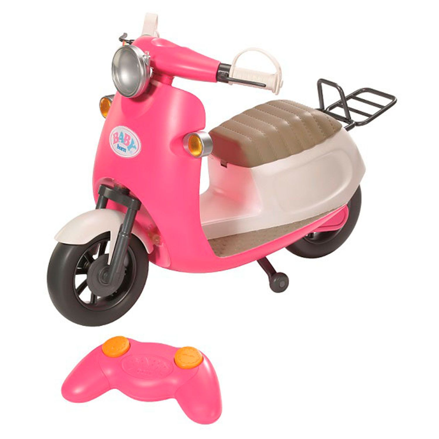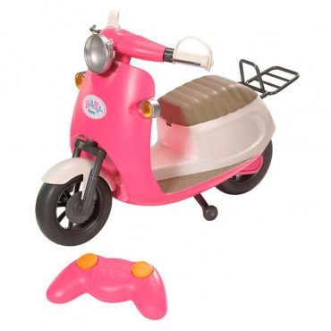 - управляется он с помощью пульта управления: нужно посадить куколку на скутер и управлять им на расстоянии, словно Бэби Борн едет сама!