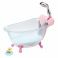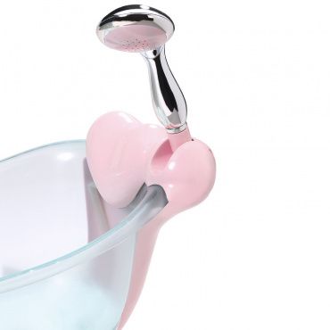 Ванна полупрозрачная, на розовых ножках и с душем.