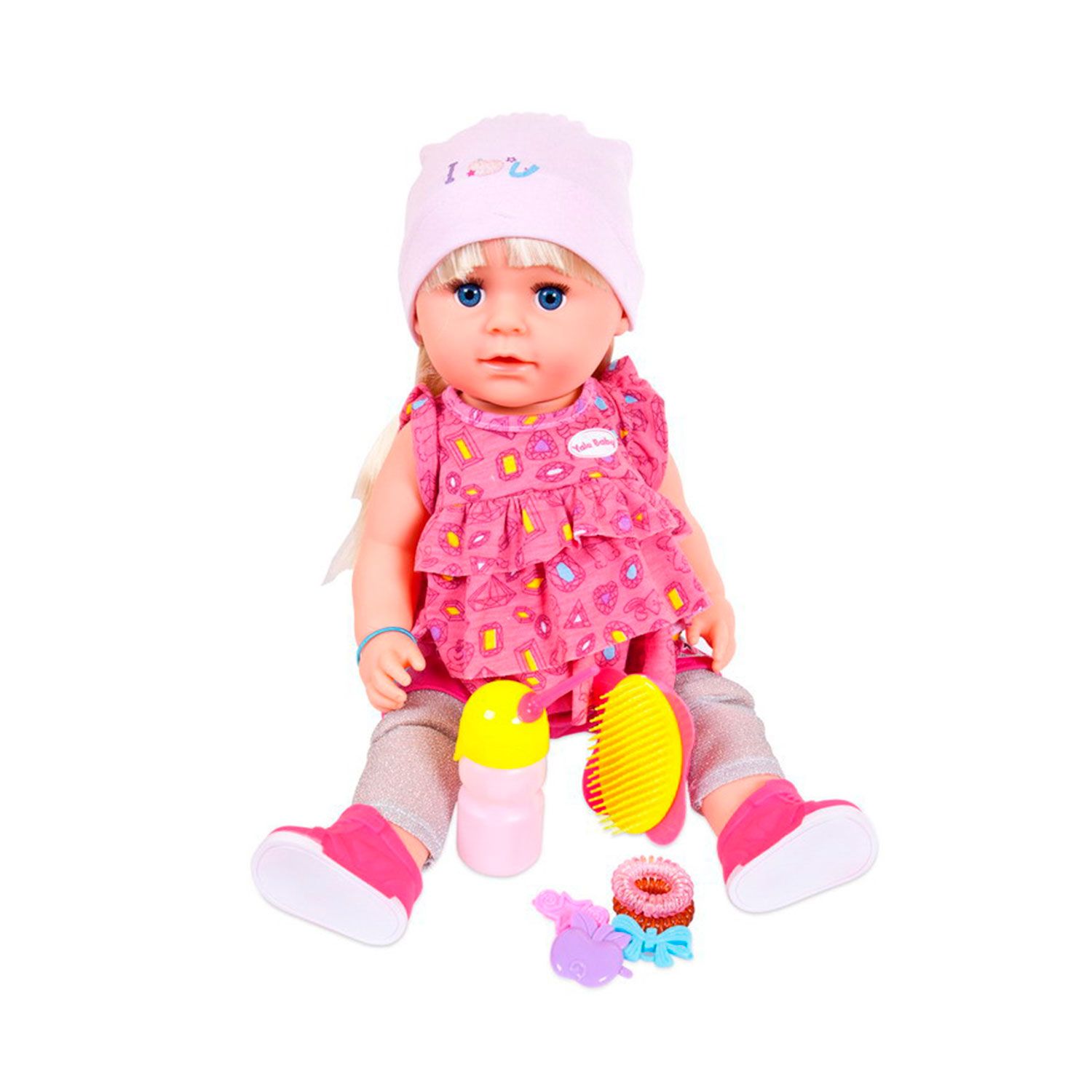- среди дополнительных аксессуаров, поставляемых в комплекте, присутствуют: поильник, необходимый для кормления куклы, а также расческа и разнообразные резинки и бантики для новых причесок