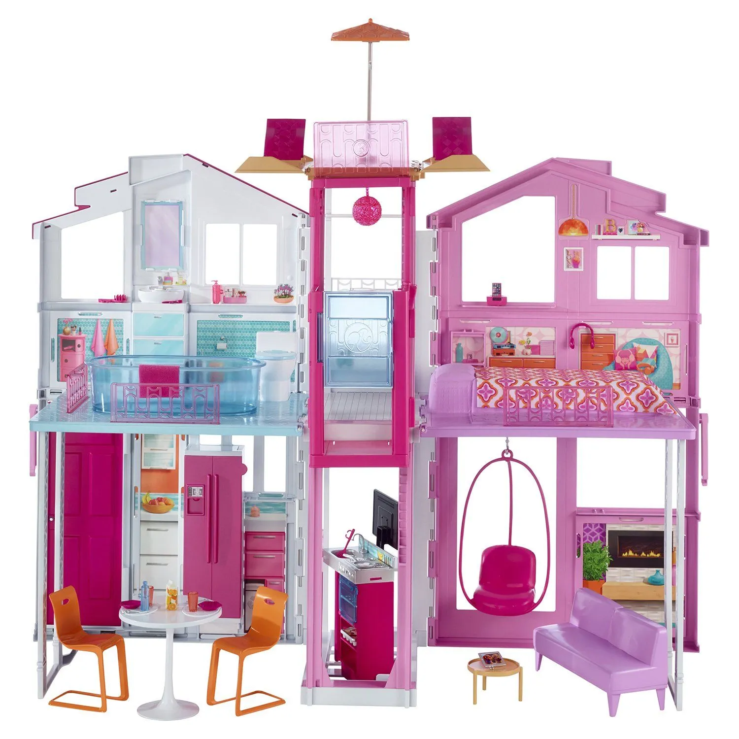 Просторный сказочный городской дом Barbie Малибу это лучшее жилье для сказочной красотки. В нем есть все необходимое для комфорта, 3 этажа и 4 просторных комнаты со стильной мебелью и разнообразными аксессуарами, которые обожает Барби.