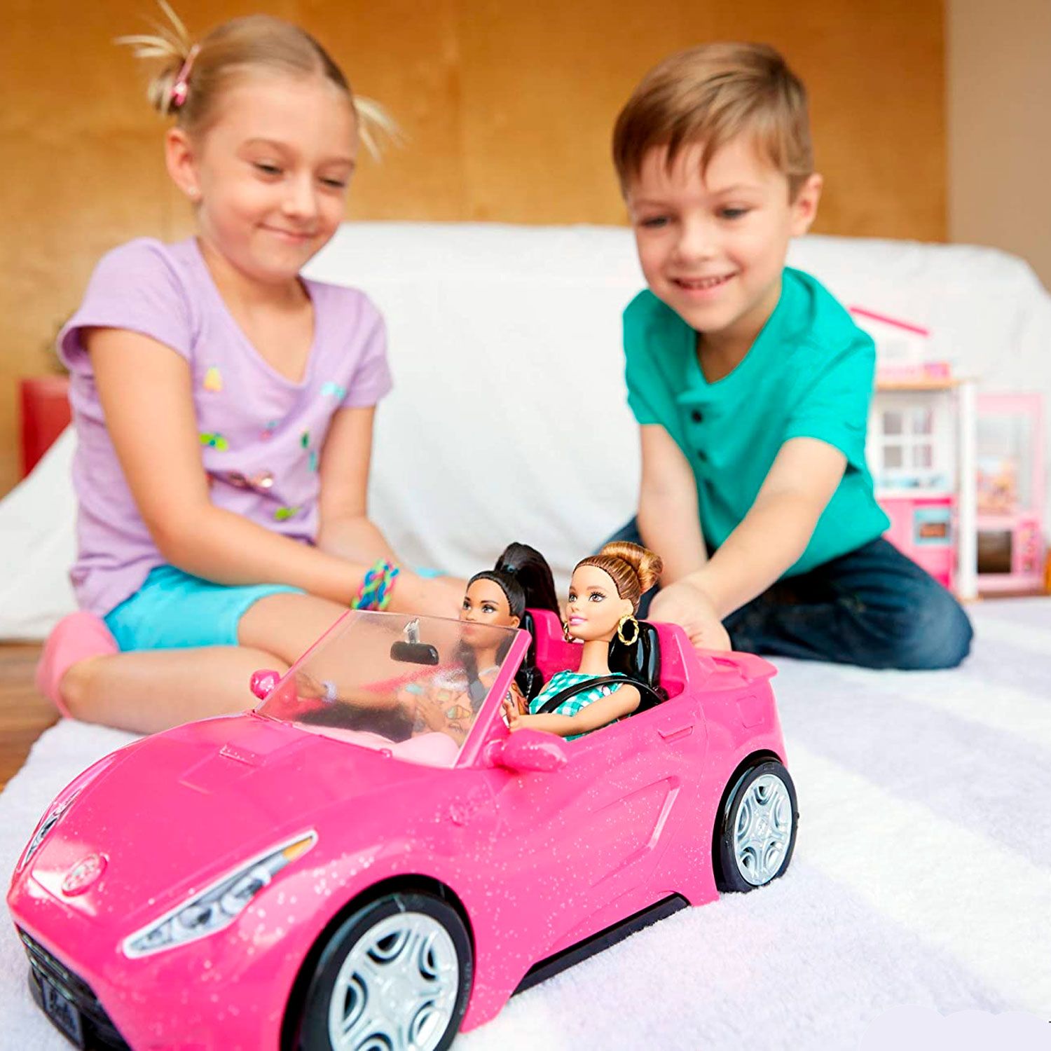 Шикарный розовый кабриолет для Barbie с удобным салоном со стегаными сиденьями станет чудесным подарком для маленькой девочки!