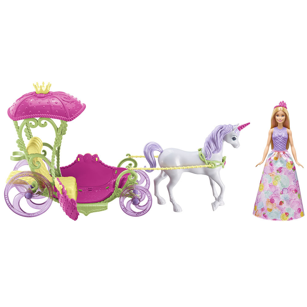 В набор входят кукла, карета и лошадка.