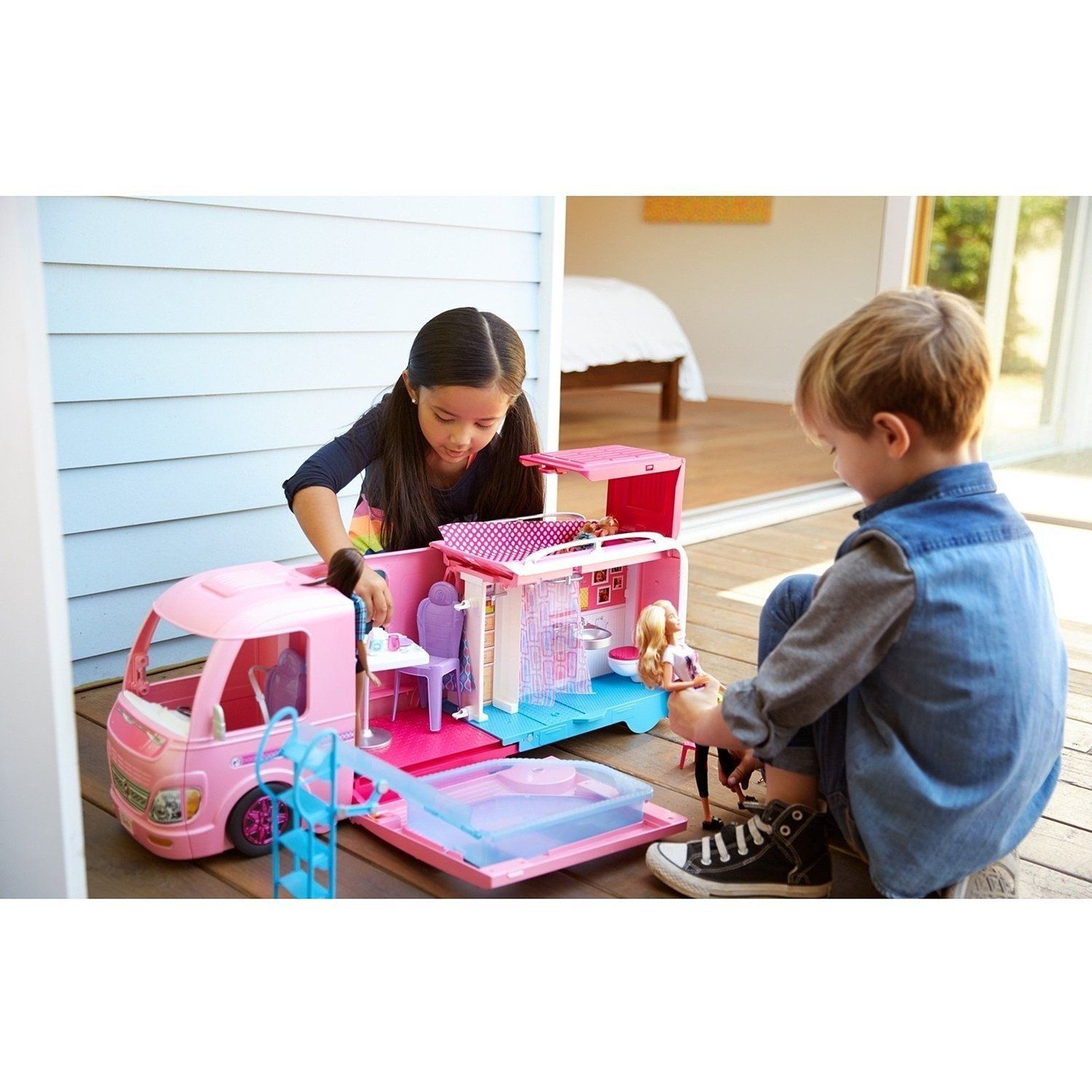 - здесь есть настоящий бассейн, в который можно налить водичку, он даже оснащен горкой с лестницей