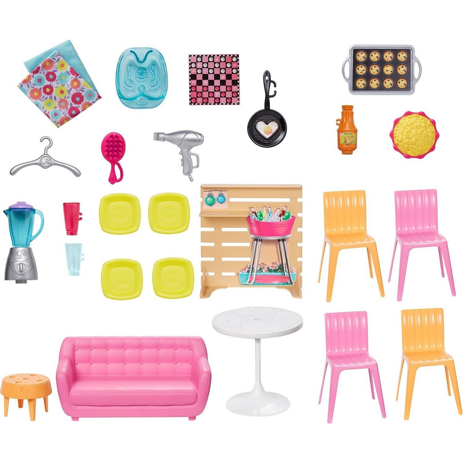 - 25 аксессуаров: предметы мебели в стиле Барби, столовые приборы, постельное белье