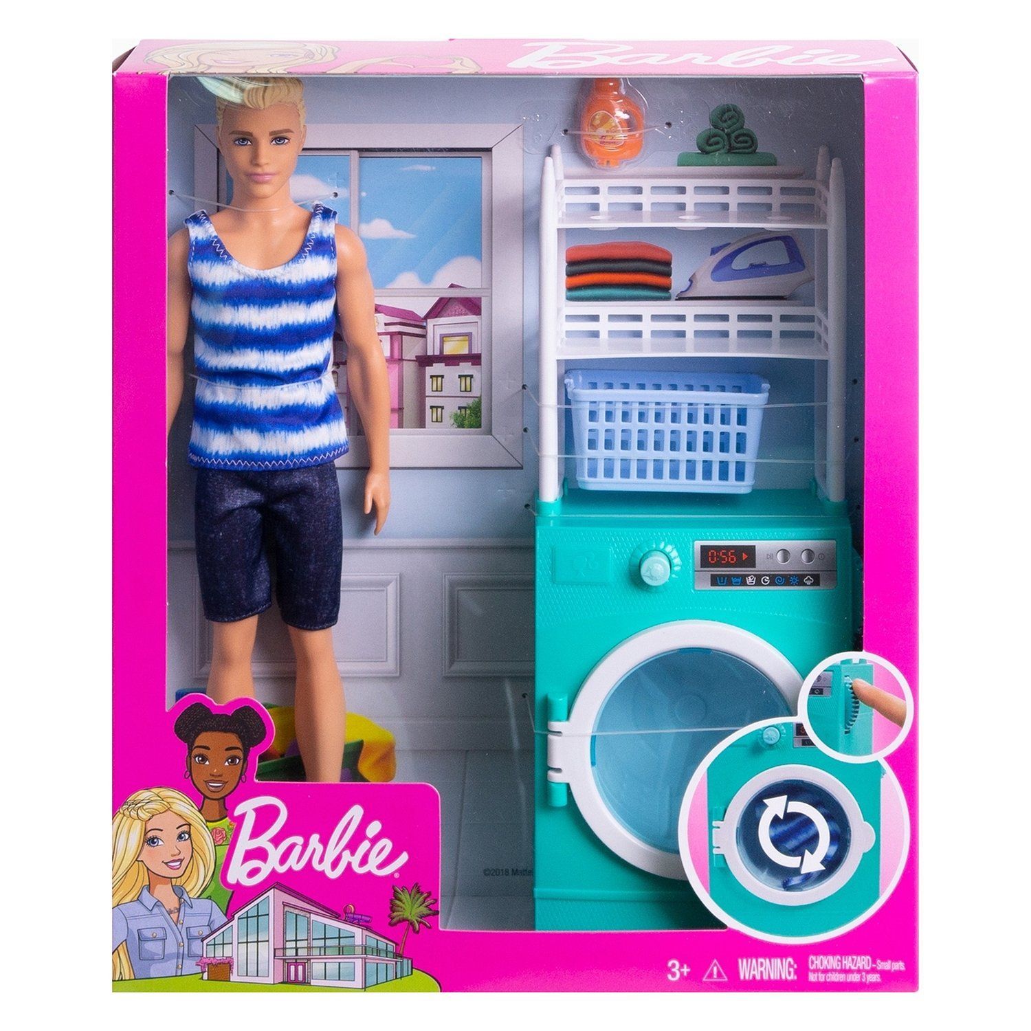 Тематический игровой набор с куклой Кеном и прачечной комнатой превратит рутинную домашнюю работу в удовольствие.